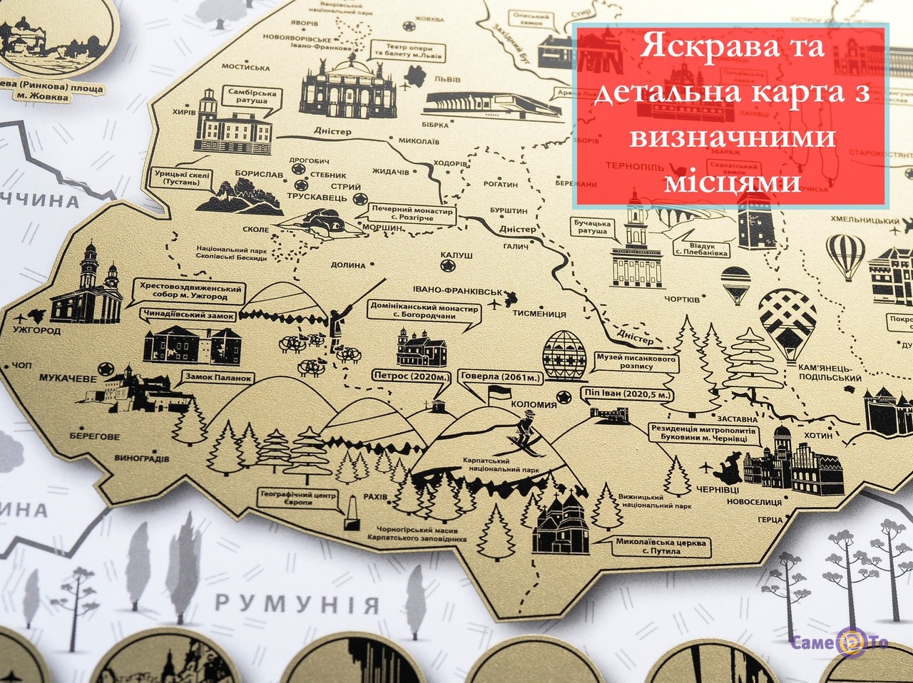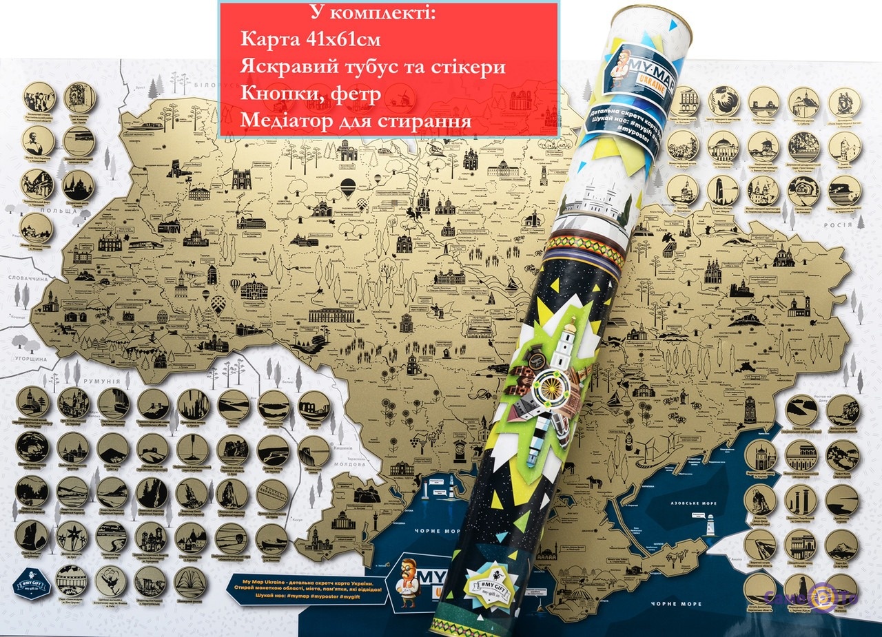 Скретч карта подорожей Україною, характеристики: