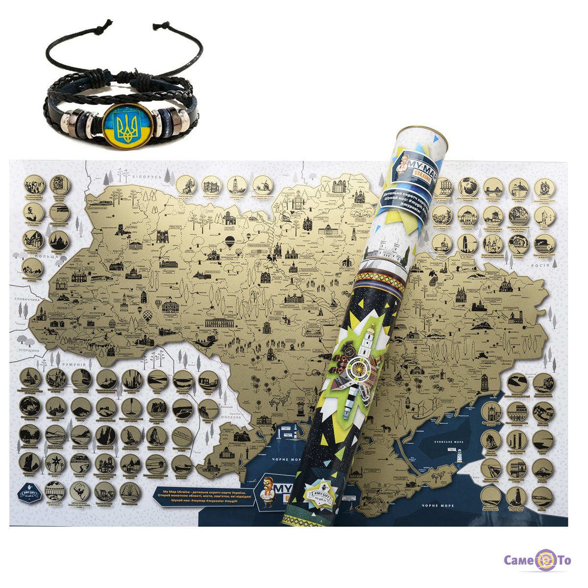 Скретч карта подорожей Україна My Map Ukraine та патріотичний плетений браслет України