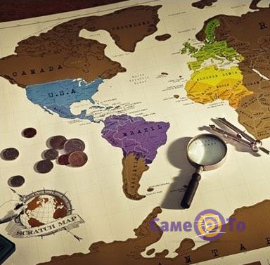 Скретч-карта світу «Travel Scratch Map Gold» (російською мовою) - це хороший подарунок для будь-якого мандрівника або просто для людини, який цікавиться географією.