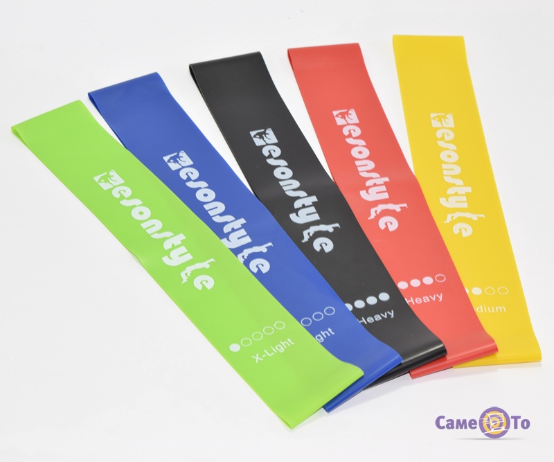 Якісна гумка для фітнесу зроблена з 100% натурального латексу, який практично не має запаху, дуже еластичний і одночасно міцний. З таким тренажером можливо розробляти м'язи рук, ніг, спини і грудей. Вправи з гумкою зміцнюють м'язи, поліпшують силові показники, діапазон рухів, а також координацію м'язів. У наборі продаються відразу 5 шт , кожна з яких має свій ступінь навантаження. При виконанні вправ за допомогою даних гумок виходить рівномірне навантаження, а також максимальний тренувальний ефект.