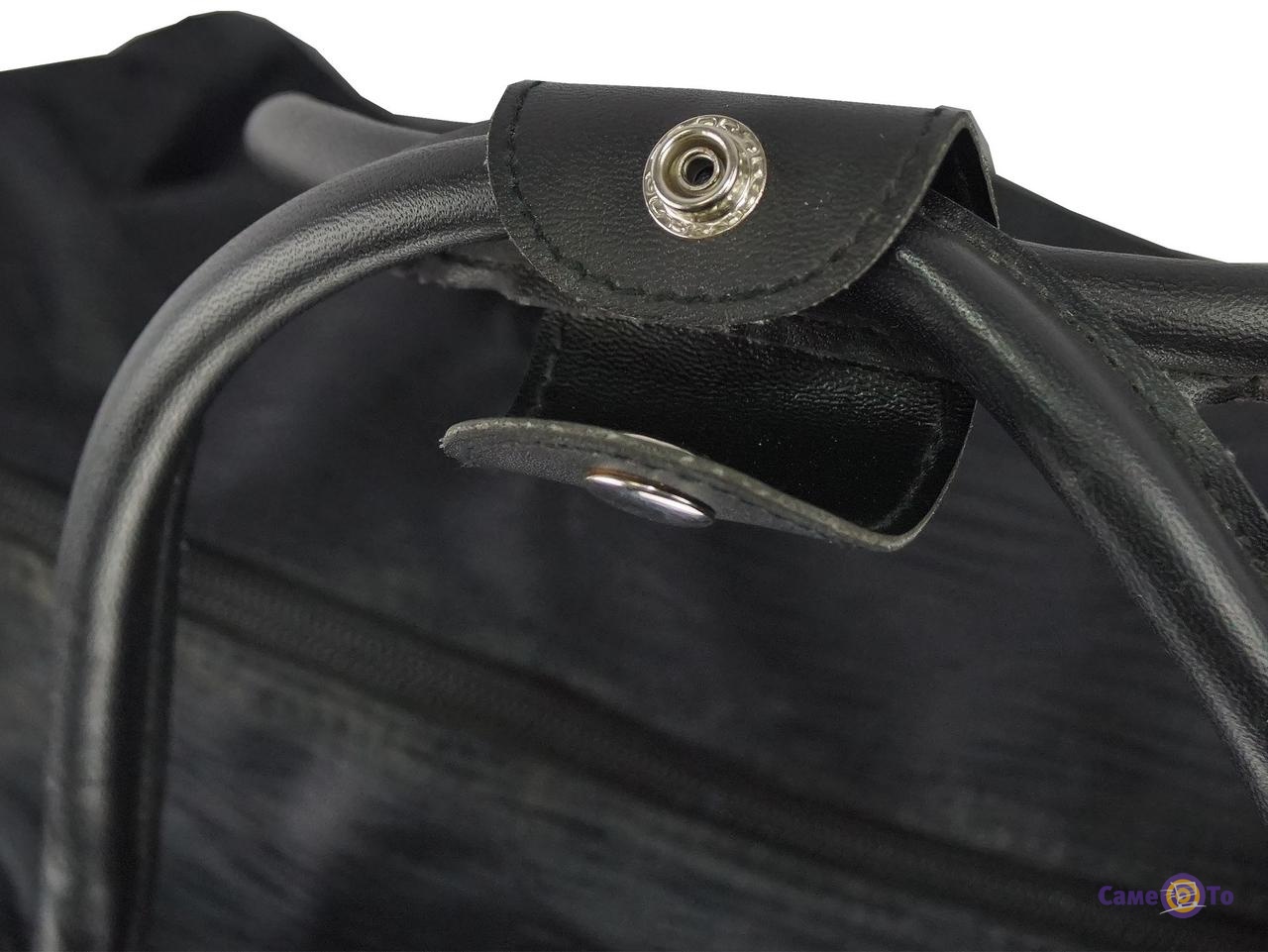Ручки сумки зроблені з щільної тканини, а саме зі шкірозамінника і оснащені затискачем на кнопці, для зручного використання висувної ручки. Такий матеріал неодмінно підходить для довгої експлуатації. Знайти висувну ручку можна в потаємній кишені сумки-валізи. Матеріал, з якого виготовлена сумкам - поліестер. Сам дорожній аксесуар цілком місткий і при цьому має зручні габарити, а саме: довжина - 54 см; ширина 29 см; висота - 30 см. Ручка висотою 50 см ідеально підійде для людини з ростом від 160 см і вище. Без речей сумка важить 1,8 кг.