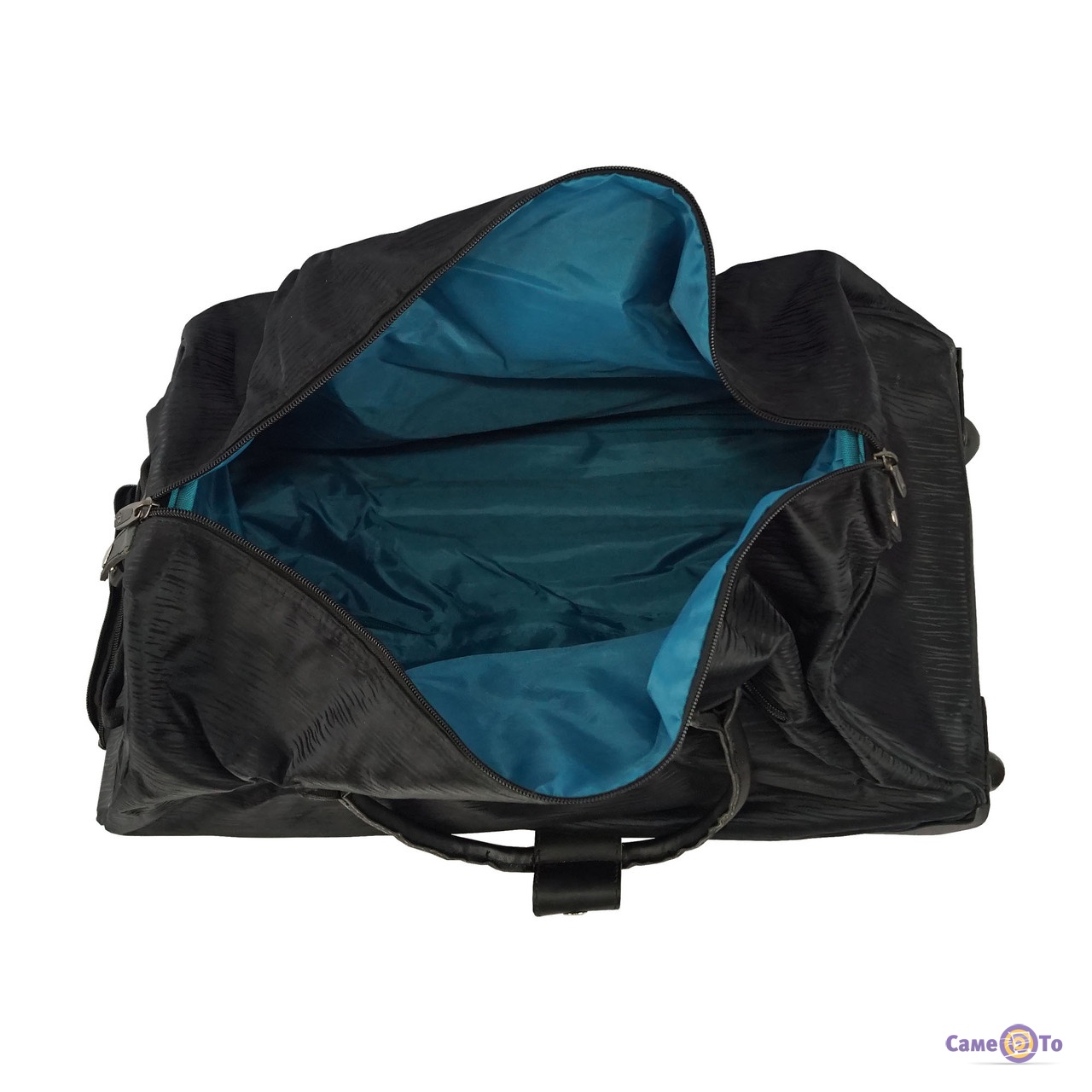 Ручки сумки сделаны из плотной ткани, а именно из кожзаменителя и оснащены зажимом на кнопке, для удобного использования выдвижной ручки. Такой материал непременно подходит для долгой эксплуатации. Найти выдвижную ручку можно в потайном кармане сумки-чемодана. Материал, из которого изготовлена сумкам - полиэстер. Сам дорожный аксессуар вполне вместителен и при этом имеет удобные габариты, а именно: длина - 54 см; ширина- 29 см; высота - 30 см. Ручка высотой 50 см идеально подойдет для человека с ростом от 160 см и выше. Без вещей сумка весит 1,8 кг.