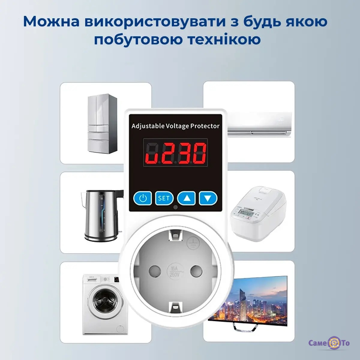 Пристрій ідеально підходить як реле напруги в розетку для холодильника або ПК, запобігаючи поломкам через стрибки напруги. Реле контролю напруги автоматично вимикає живлення при нестабільності мережі, виступаючи як відсікач напруги. Регулятор напруги простий у використанні та компактний. Захист від перепадів напруги забезпечить довговічність техніки.