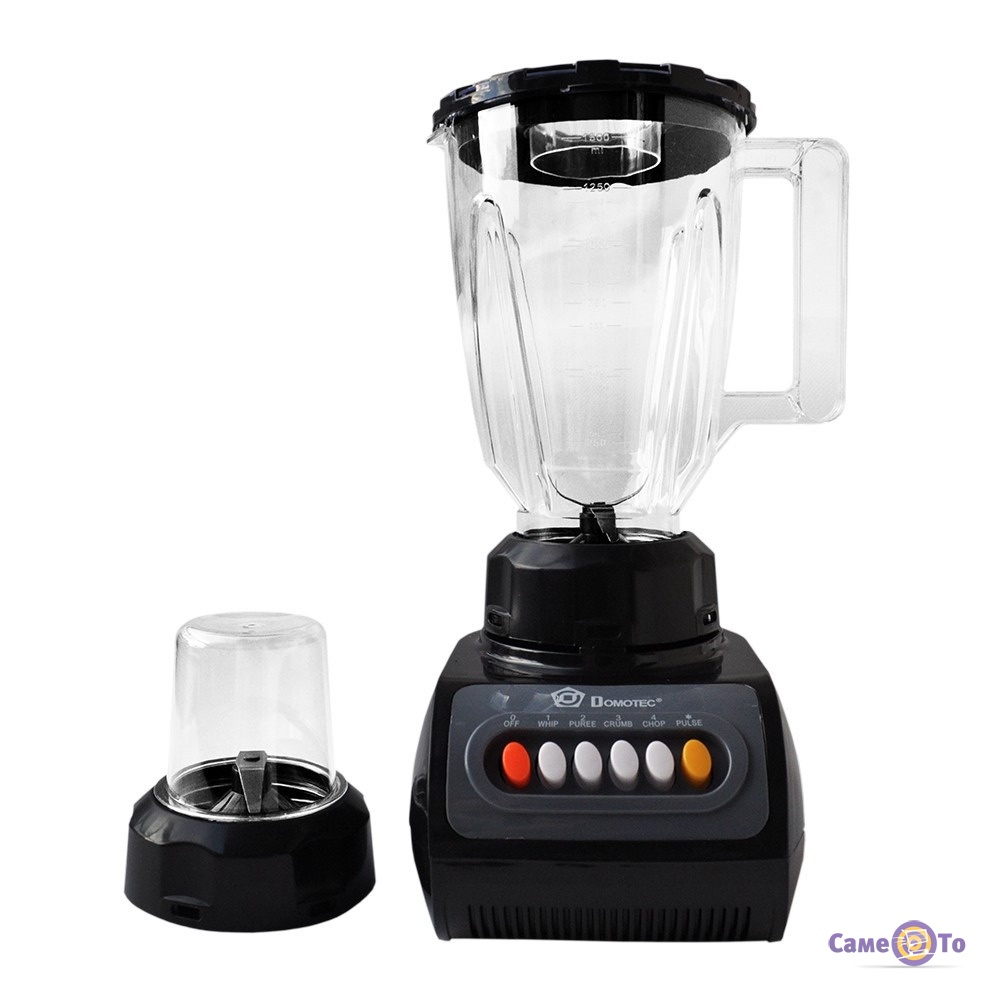 Сегодня блендер стационарный купить вовсе не проблема, но ведь все мы хотим приобрести качественный вариант недорого. И Domotec MS-9099 как раз таким и является. Данный блендер имеет 4 разных скорости для переработки ингредиентов. Т.е. вы сможете подобрать оптимальный вариант для каждого продукта отдельно. Кстати, использовать эту модель можно и как блендер для смузи, и как блендер для коктейлей. Корпус этого прибора и чаша к нему представляют собой пластик, ножи острые и изготовлены из нержавеющей стали. Работает изделие от сети, длина шнура питания – 0,8 м. Блендер с чашей отличается компактными параметрами – 34 см×19 см×15 см, поэтому он органично впишется в интерьер любой кухни и не займет много места на рабочей поверхности стола.