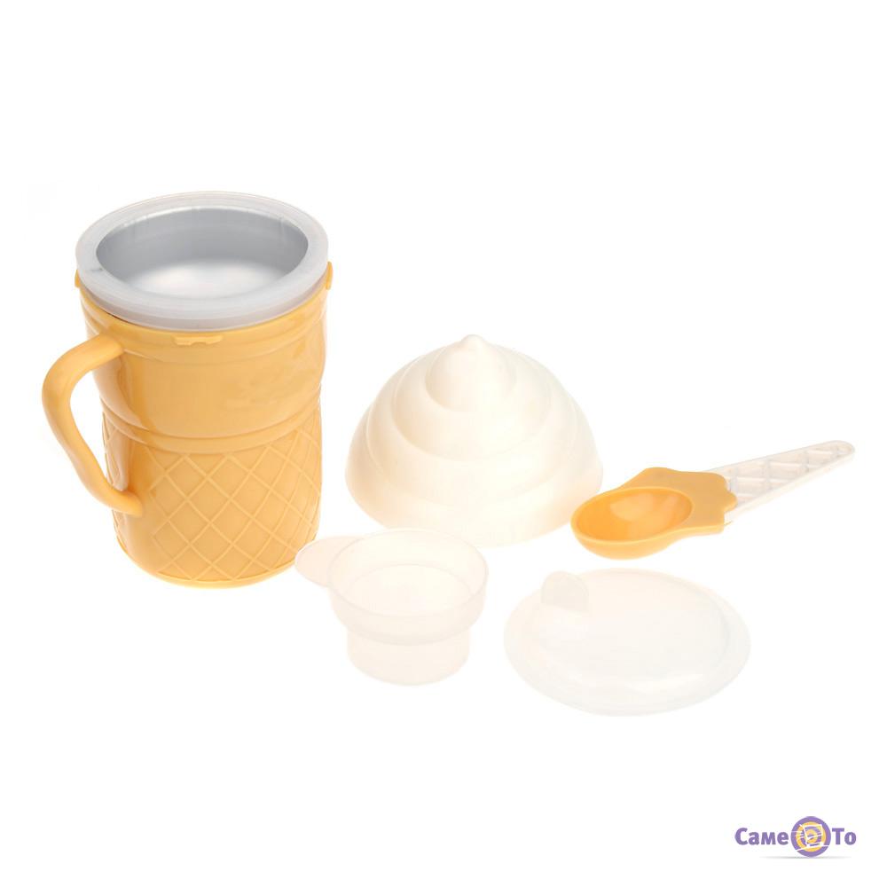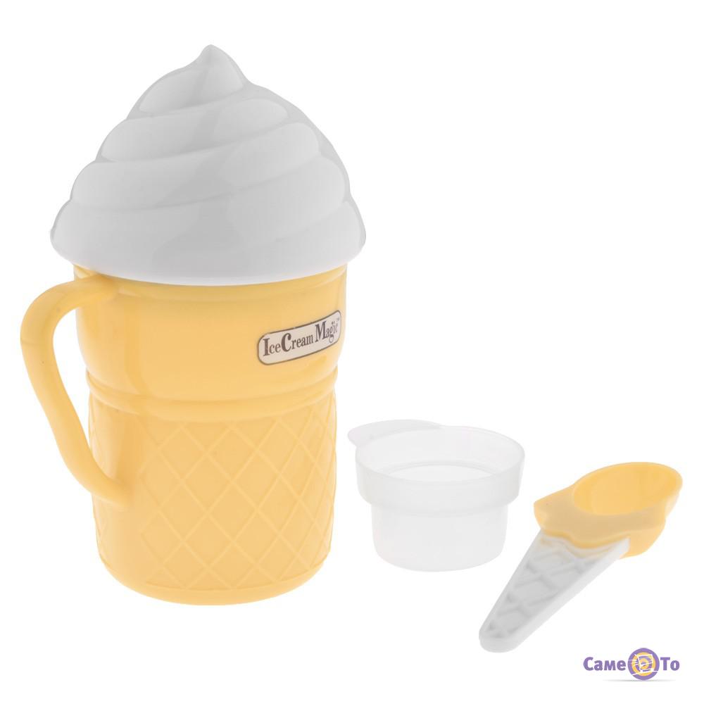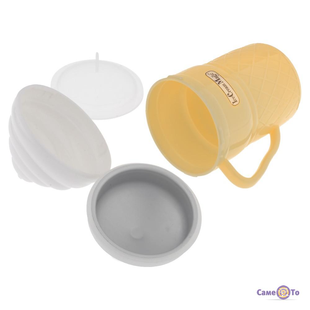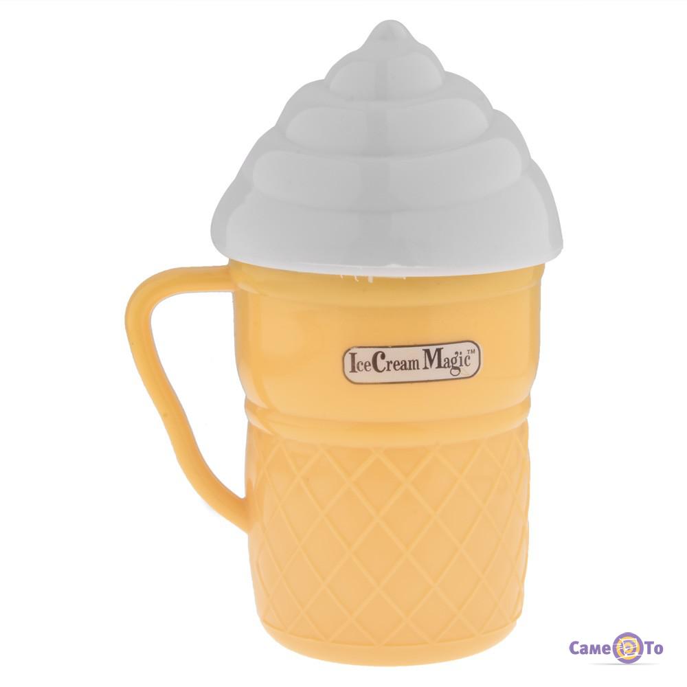 Стаканчик для приготування морозива Айс Крім Меджик має дуже привабливий дизайн, який припаде до смаку будь-якій дитині. Чашечка схожа на вафельний стаканчик, з гіркою ніжного мусу. Тільки при погляді на сам стаканчик, вже пробуджується апетит і хочеться скоріше спробувати ложечку смакоти, що знаходиться всередині.