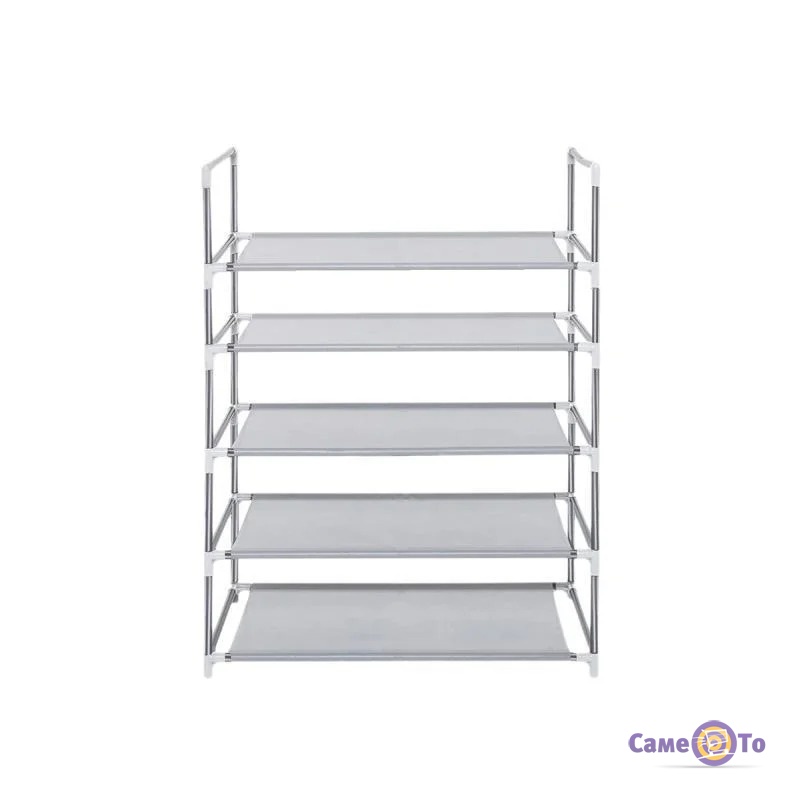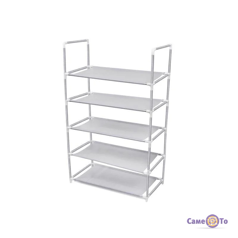 Завдяки стелажу на 5 ярусів ви зможете компактно зберігати абсолютно все взуття. При цьому, в разі необхідності, ви з легкістю зможете знайти потрібну пару, оскільки все взуття буде стояти на виду. Стелаж складається з двох стійок і п'яти ярусів. Це робить його стійким і містким. Завдяки стійкості можна не боятися перекидання, і що все взуття вивалиться вниз на підлогу з полички. Стійки виготовлені з високоміцного матеріалу, а яруси з тканини. Завдяки такій комбінації матеріалів стелаж прослужить досить довгий час, а його властивості не зіпсуються з плином часу. При цьому вартість даного стелажа невелика, що дає можливість заощадити гроші на покупку дорогих меблів.