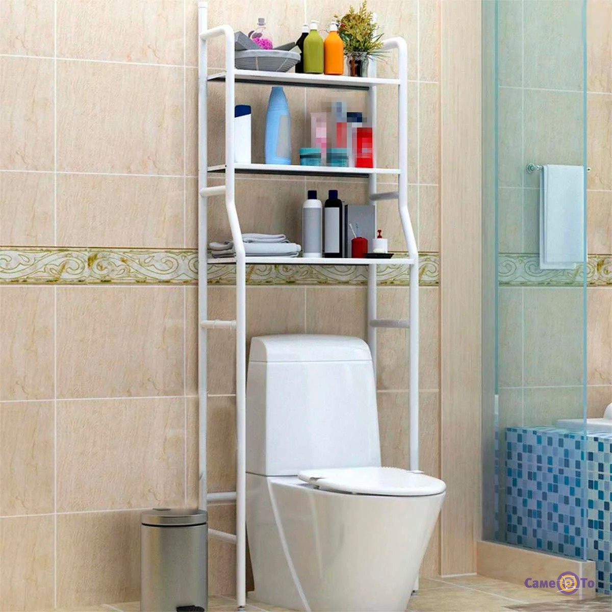 Зроблені зі сталі з порошковим покриттям, каркас і полички можуть похвалитися своїм терміном служби. Стелаж в туалет ставиться на підлогу, що гарантує простоту установки і зняття при переїзді або заміні унітазу.