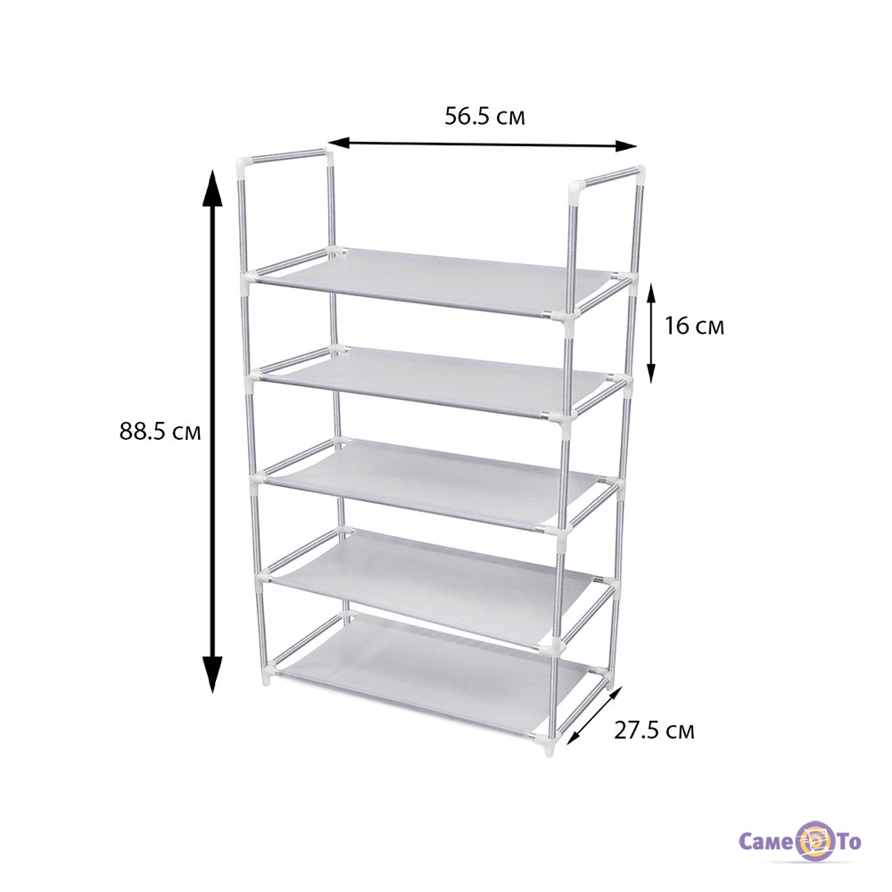 Каркас зроблений з металу, а самі полички з міцного текстилю. Така особливість робить поличку для взуття досить стійкою і міцною. Якщо заповнити всі яруси взуттям, стелаж НЕ перекинеться і не зламається. Взуттєва полка має відкриту конструкцію. Взуття не доведеться довго шукати, і вона не буде зберігати в собі неприємні запахи, якби вона перебувала в закритому просторі. Деякі вирішують купити етажерку для взуття з метою використовувати її не під взуття, а під дитячі іграшки, під зберігання непотрібних речей на балконі або в гаражі. Якщо поставити кілька таких полиць і скласти на них непотрібні речі, простір в кімнаті буде виглядати акуратним і доглянутим. При цьому стелаж досить місткий і легко миється. Має гарний дизайн і підходить під будь-який інтер'єр.