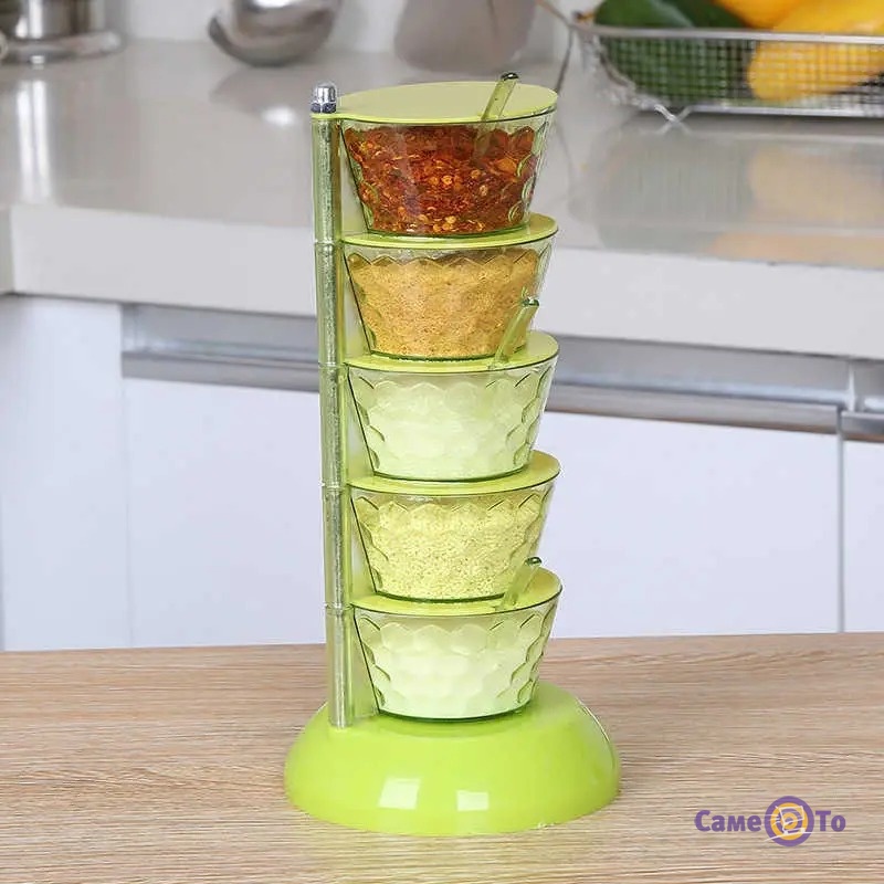 Стойка с баночками для специй Seasoning Box Салатовый набор емкостей для приправ (5шт.)