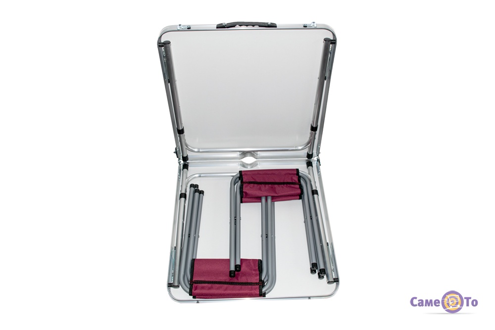 Такий розкладний столик зробить Ваш відпочинок, де б він не проходив, по-домашньому комфортним. Максимальне навантаження, яке даний столик здатний витримати становить 30 кг. При необхідності стіл і стільці завжди можна скласти і легко помістити в багажник автомобіля. Такий варіант дозволяє компактно укладати з собою в поїздку все необхідне і тим самим забезпечувати комфортний і незабутній відпочинок для всієї родини. Такий столик можна використовувати для поїздки на природу, для риболовлі, кемпінгового відпочинку, а також в якості садових меблів на дачі. Він досить місткий і сім'я з 5 чоловік спокійно зможе на них розміститися і провести незабутньо час.