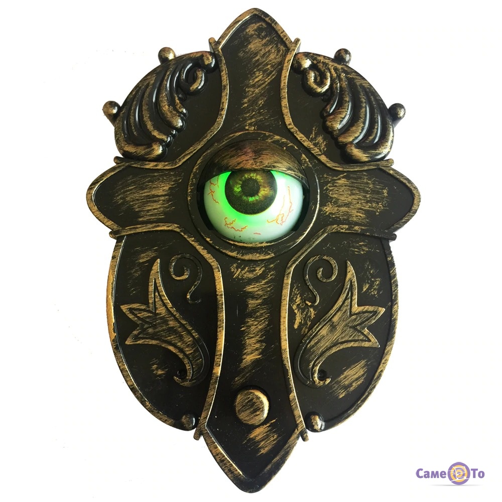 Пропонований нами дзвінок дверний можна зафіксувати на двері або на стіну. Як тільки гості натиснуть на кнопку, у дзвінка відчинить повіку і ваші візитери зможуть побачити світло ока, який схожий на справжній. До речі, звуковий супровід, яке видає даний дзвінок в квартиру не менше креативне. Ви почуєте скрип дверей і зловісний сміх.