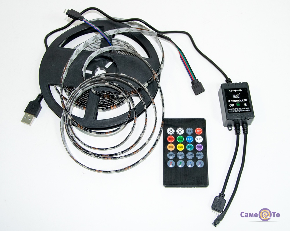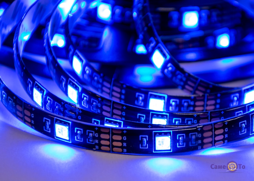 Такой светодиодной лентой легко можно украсить дом, создать при этом уютную атмосферу праздников. Например, когда вы смотрите телевизор в темноте, можно этой лентой разбавить темноту ярким цветом и тогда ваши глаза будут меньше напряжены. Светодиодная лента прекрасно подойдет для любого помещения. Купить светодиодную ленту можно для того, чтобы использовать для украшения столовой, спальни, верхнего этажа, кухни, крыльца, компьютерного стола. Такая лента имеет 4 режима мигания и 4 режима, которые могут реагировать на звук. Это создано для украшения телевизора по задней стенке. При звуковой озвучке, цвета на подсветке будут меняться и создавать очень красивый эффект. В комплекте есть пульт с батарейками, при помощи которого можно переключаться между режимами.