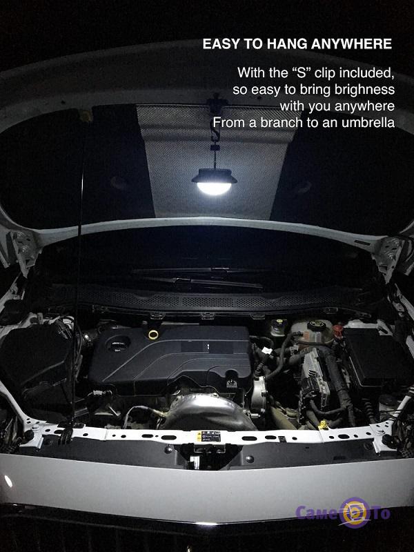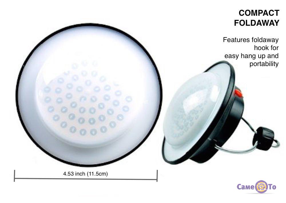 Ее можно прикрепить прямо под куполом в палатке, и вам будет светло и уютно. Светит лампа довольно ярко, отлично справляется с площадью двух- и четырехместных палаток. Изделие имеет разные режимы мощности: слабый, средний и сильный. Режим освещения зависит от количества работающих светодиодов, например, при сильном режиме работает целых 35 светодиодных лампочек.