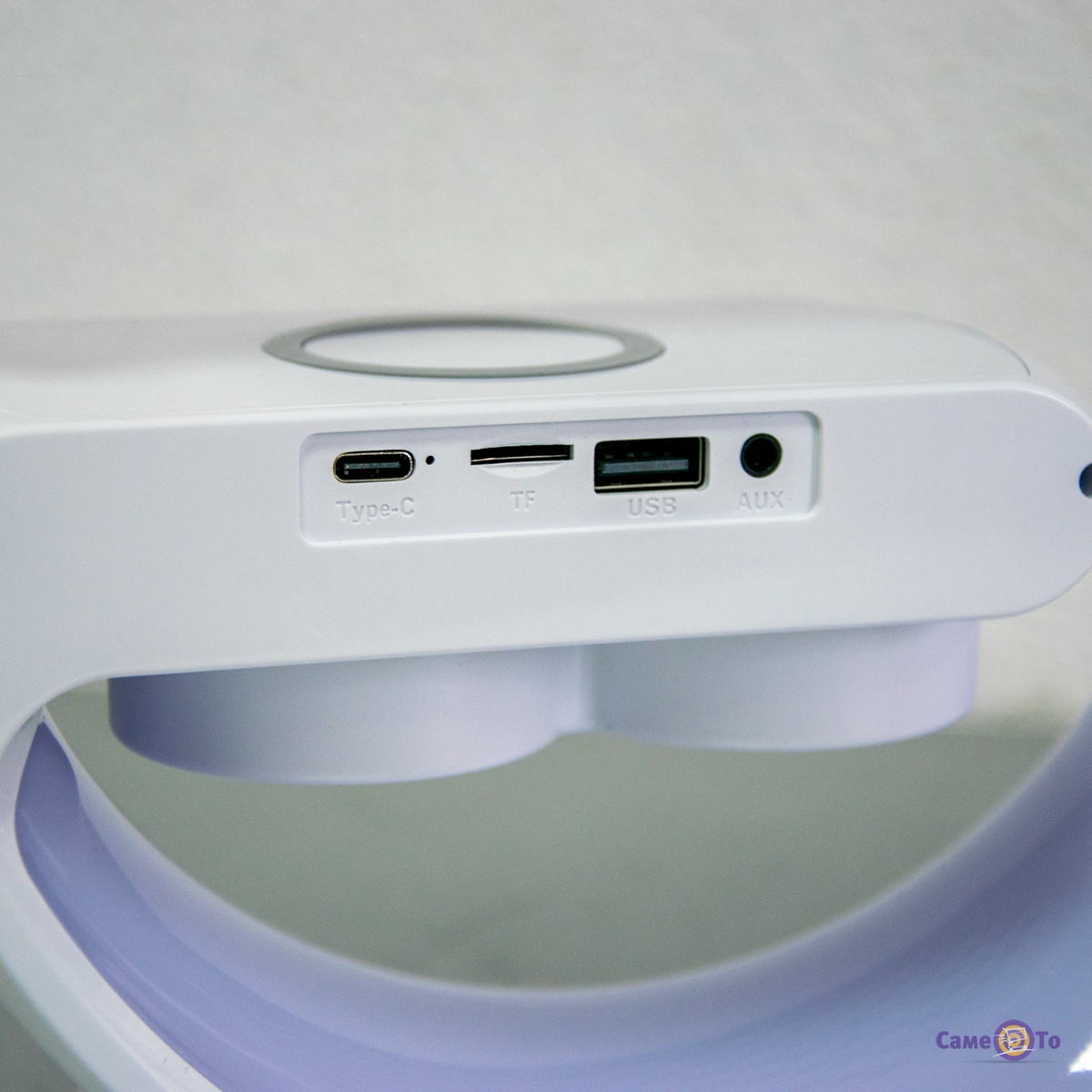 Інтегрована бездротова зарядка дозволяє заряджати ваш смартфон прямо на поверхні світильника, що робить його універсальним та функціональним аксесуаром. З Bluetooth-колонкою ви зможете насолоджуватися високоякісним звуком у будь-який час.