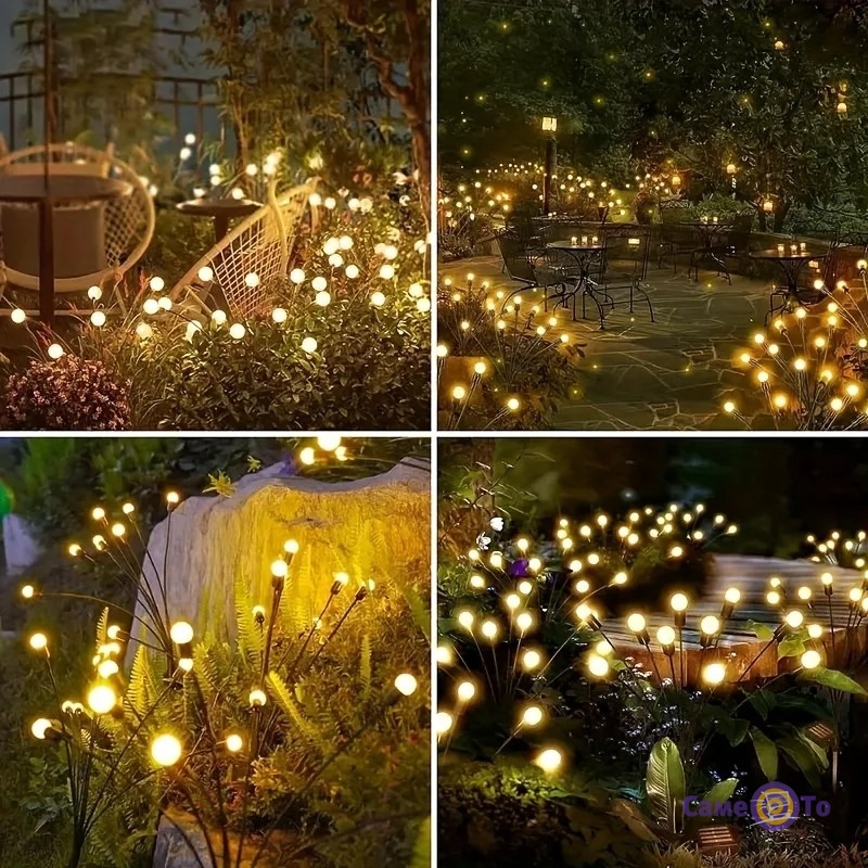 Садові світильники автоматично заряджаються від сонячного світла вдень і починають м’яко світитися в темний час доби, прикрашаючи простір живими вогниками. Надійна конструкція та захист від вологи дозволяють використовувати їх за будь-якої погоди, а елегантний дизайн робить їх ідеальними як для саду, так і для дачі.