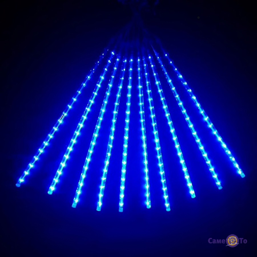Ця новорічна гірлянда світиться синім кольором, її довжина становить 4,1 м. Режим світіння нагадує метеоритний дощ. Гірлянда бахрома має 8 ниток вниз, довжина яких становить близько 0,5 м. Якщо даний варіант використовувати як гірлянду на вікна, то її світіння буде видно і в кімнаті, і зовні перехожим. Світлодіодна гірлянда нагадує стікаючі вниз краплі або зірки, що падають з неба. Але це не всі плюси. Найголовніше, що гірлянда бурулька має доступну ціну та придбати її можна у нашому інтернет-магазині «СамеТо» з доставкою по Україні.