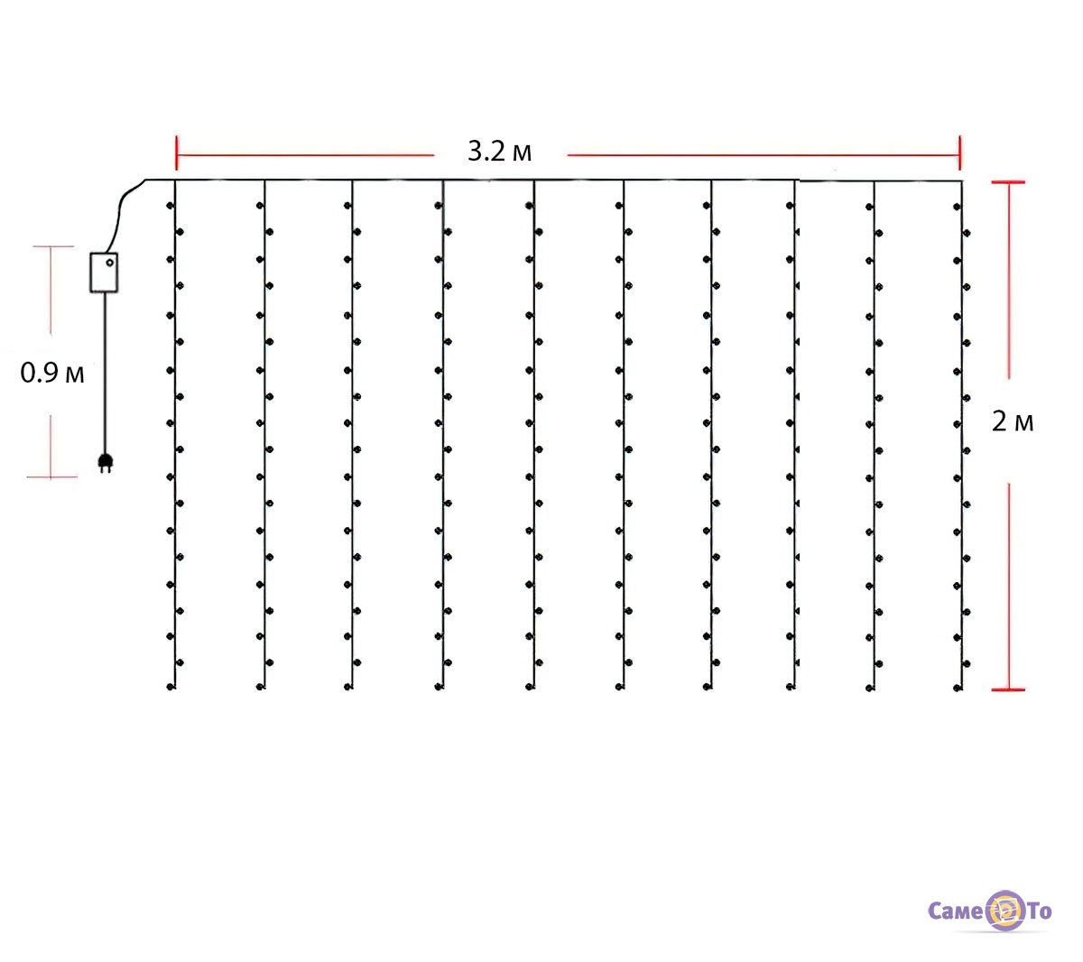 І сьогодні до вашої уваги пропонується мультикольорова гірлянда штору водоспад «Rains 3x2-M», яка має універсальний розмір – 3.2 м з лед-лампами та 4.1 м цілком з урахуванням кабелю. Така гірлянда дощ у робочому вигляді створює ефект крапель води, що падають, на які можна дивитися вічно. Далеко не всі новорічні гірлянди можуть з'єднуватися один з одним, але дана модель має в кінці спеціальне гніздо для вилки іншої такої ж гірлянди.