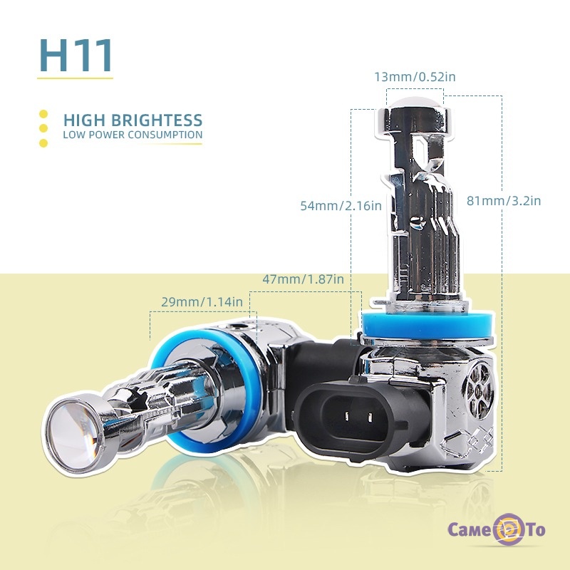 Завдяки стандартному цоколю H11 та робочій напрузі 12 В, встановлення ламп не потребує доопрацювань або спеціальних інструментів. Компактний розмір і універсальна конструкція роблять їх сумісними з більшістю моделей автомобілів.