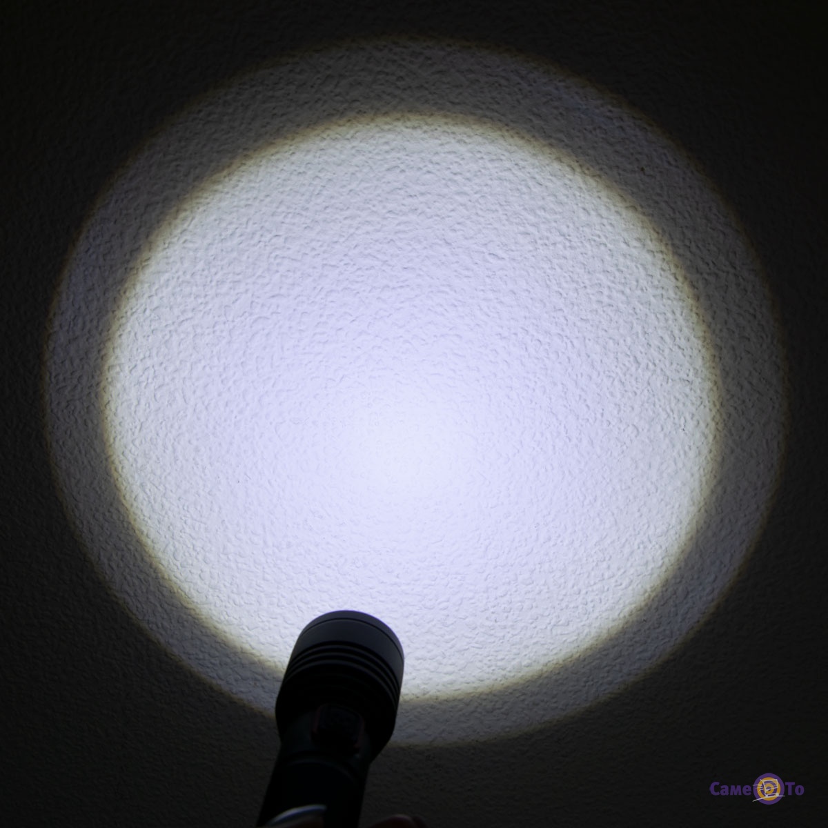 Цей світлодіодний ліхтар має фокусовану лінзу, за допомогою якої можна змінювати кут розсіювання світла. Завдяки цій функції акумуляторний ліхтарик може світити як вузьким променем, так і широким колом.