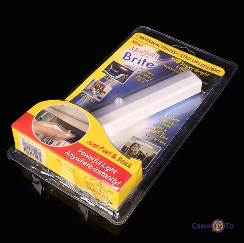 Світильник Motion Brite має компактний і стильний зовнішній вигляд, він виконаний у формі тонкого витягнутого прямокутника. У аксесуарі передбачено наявність 10 світлодіодів, які радують своїм потужним світінням. При цьому світильник має компактні розміри, тобто він відмінно освітлює робочий простір, але при цьому не займає надто багато місця.