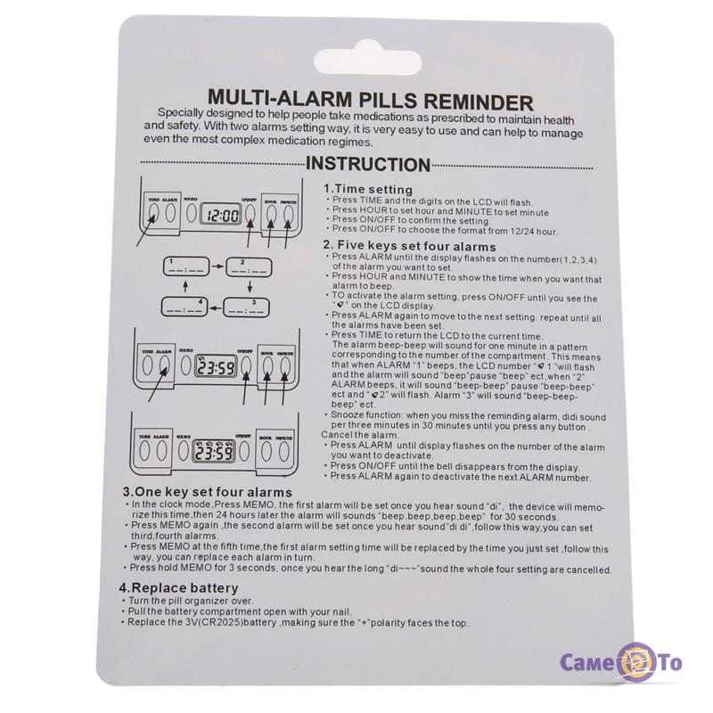 • У режимі годинника натисніть MEMO, перший сигнал буде встановлено, як тільки ви почуєте звук «di». Пристрій запам'ятає цей час. Потім через 24 години звуковий сигнал лунатиме «beep.beep.beep.beep» протягом 30 секунд