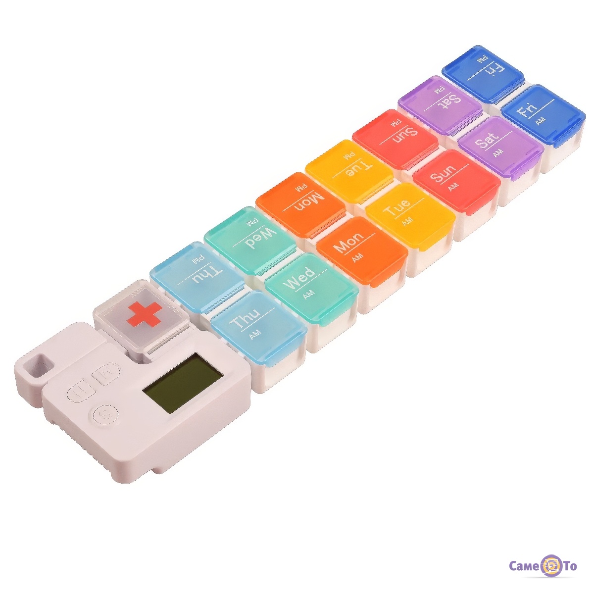 Представляємо вам електронну таблетницю з таймером Pill Box - ваш ідеальний органайзер для таблеток на 7 днів! Цей зручний органайзер забезпечує точне і своєчасне прийняття ліків, допомагаючи вам стежити за вашим режимом прийому.