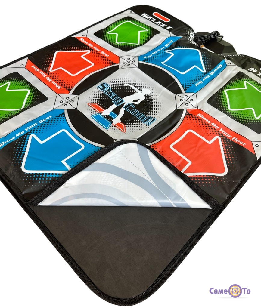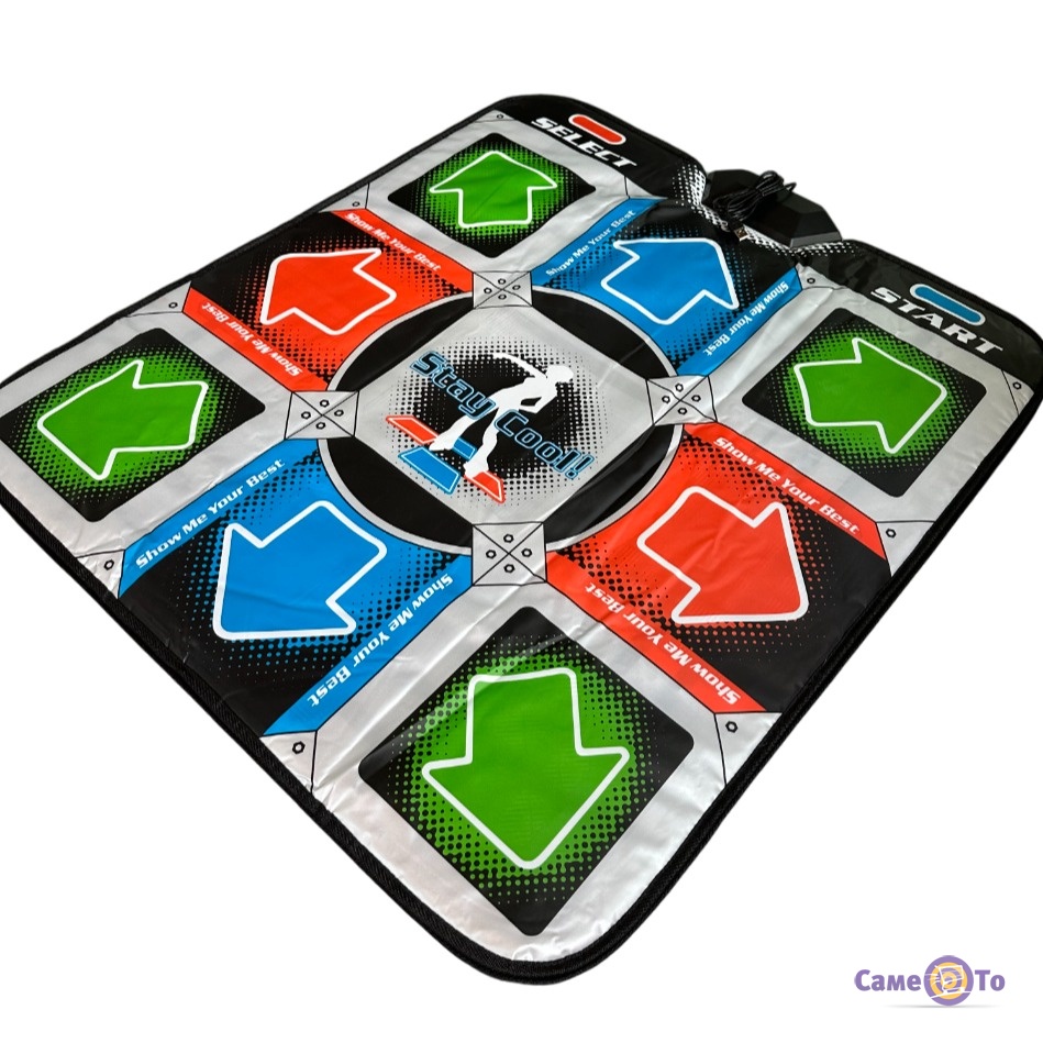 Устройство является абсолютно безопасным, несмотря на то, что сделано из мягкого пластика. Благодаря специальному покрытию, защищающему от скольжения, вы можете не беспокоиться о том, что ваш ребенок получит травму во время игры. Это полностью исключено. Коврик состоит из 10 активных кнопок. Его размер - чуть меньше одного квадратного метра. Суть игры заключается в том, что нужно наступать ногами на кнопки, соответствующие высвечивающимся на экране компьютера. Можно выбрать одного танцора, или нескольких и устроить танцевальные соревнования между членами семьи или гостями. За правильное попадание на кнопки коврика ногами вам будут начисляться баллы. Кто наберет наибольшее количество баллов, тот и победил!