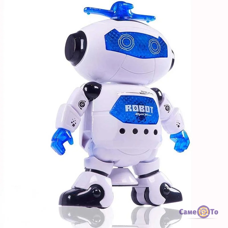 Гладкі лінії і світлі кольори (блакитний і білий) надають роботу дуже милий і доброзичливий вигляд, тому робот підійде навіть маленьким дітям від трьох років. Іграшка також імітує живе спілкування, що робить її розвиваючою. Зовнішній вигляд стає цікавішим через маленькі лампочки, підсвічуванням володіють руки, очі і живіт робота, також його голова має пропелер. Така іграшка точно викличе захват у вашого синочка чи донечки.