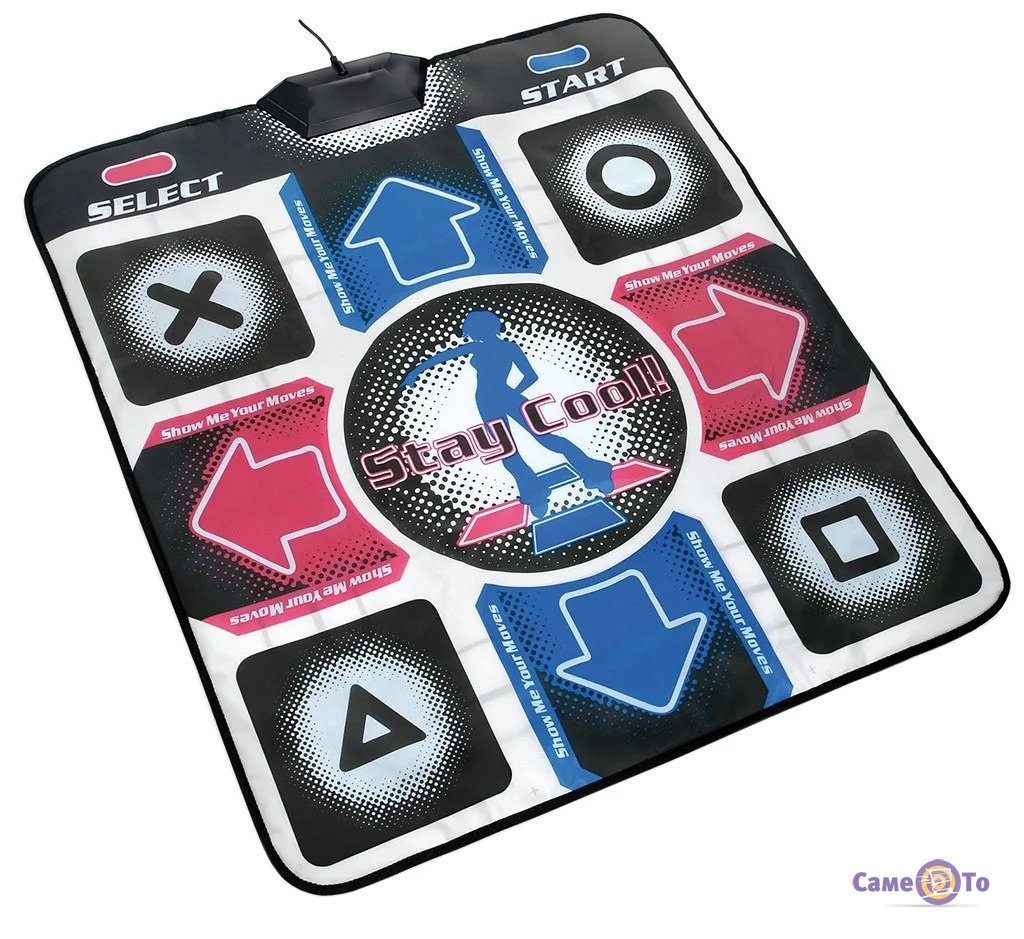 Провід досить довгий, близько двох метрів, також зарядження можливо від батарейок або від мережі. Танцювальний килимок дуже легко підключити до телевізора (втім, як і до іншої техніки, що підходить) використовуючи відповідні роз'єми при підключенні. Принцип гри на танцювальному килимку дуже простий, адже все що вам знадобиться це уважність і вправність: хто набере найбільше балів, той і переможе. Розміри становлять 92х80 см, що робить його зручним у використанні, і дає можливість легко ставати, де завгодно, важить всього 690 г, що гарантують зручність при транспортуванні. Заряд відбувається від блоку живлення 9В або ж від чотирьох батарейок типу AAA.