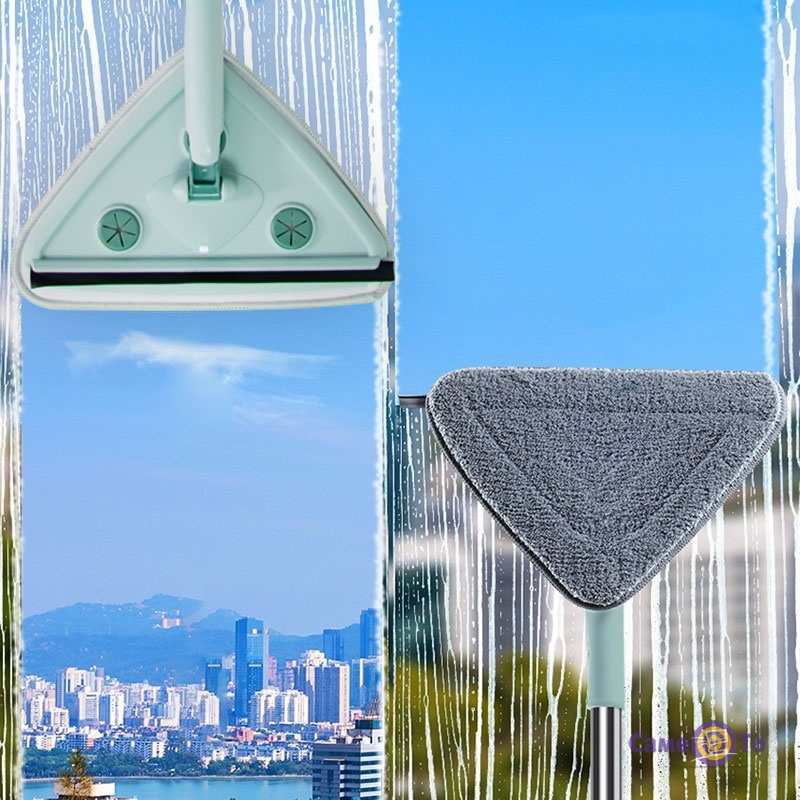 Познайомтеся з інноваційною шваброю для миття вікон - трикутною щіткою, що обертається! Цей унікальний пристрій пропонує зручний та ефективний спосіб очищення вікон від бруду та пилу, не вимагаючи зайвих зусиль.