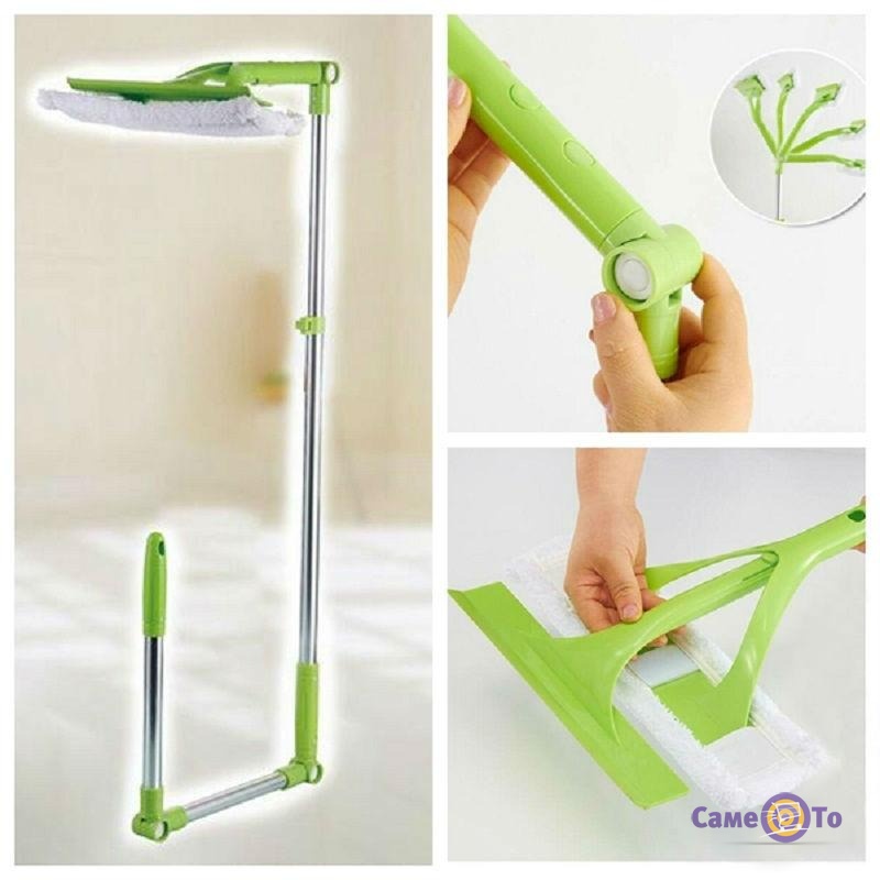 Завдяки телескопічній ручці, ви зможете помити не тільки вікна, а й дістати до стелі. Її довжина регулюється від 155 до 193 сантиметрів. Вона також стане порятунком для людей невисокого зросту. Швабра для миття вікон багатофункціональна, вона підходить для миття: вікон, підлоги і стін, дзеркал і скляних поверхонь, стель і будь-яких важкодоступних поверхонь.