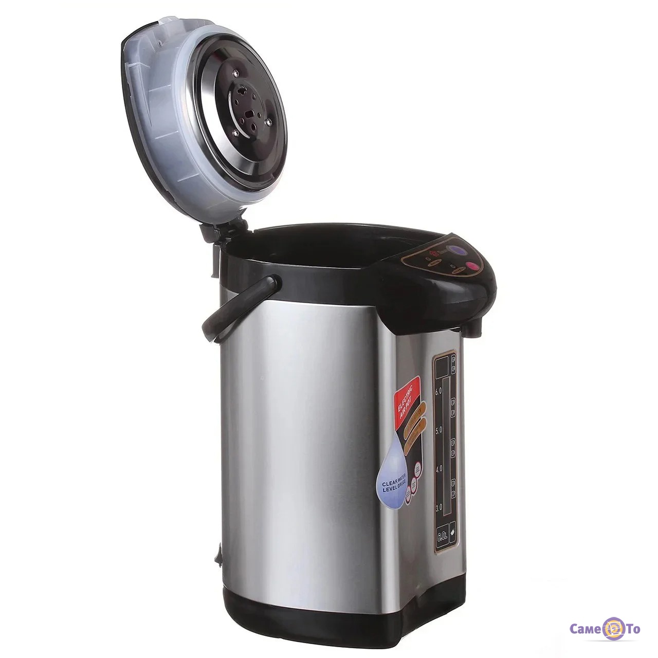 Унікальний в своєму використанні та практичний. Цей термос дуже місткий, в нього можна залити шість літрів води. Термопот  має стильний корпус, а іще він зроблений із нержавіючої сталі. Вода з термосу подається трьома шляхами: