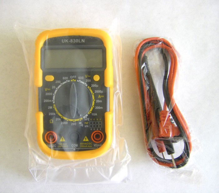 Мультиметр UK-830LN - компактний кишеньковий 3,5 розрядний цифровий прилад для вимірювання постійної, змінної напруги, постійного струму, опорів, перевірки діодів і транзисторів.