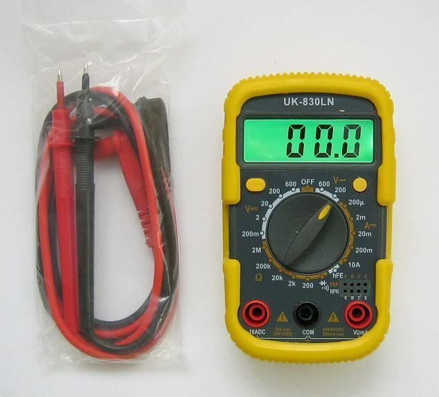Мультиметр UK-830LN – компактный карманный 3,5 -разрядный цифровой прибор для измерения постоянного, переменного напряжения, постоянного тока, сопротивлений, проверки диодов и транзисторов.