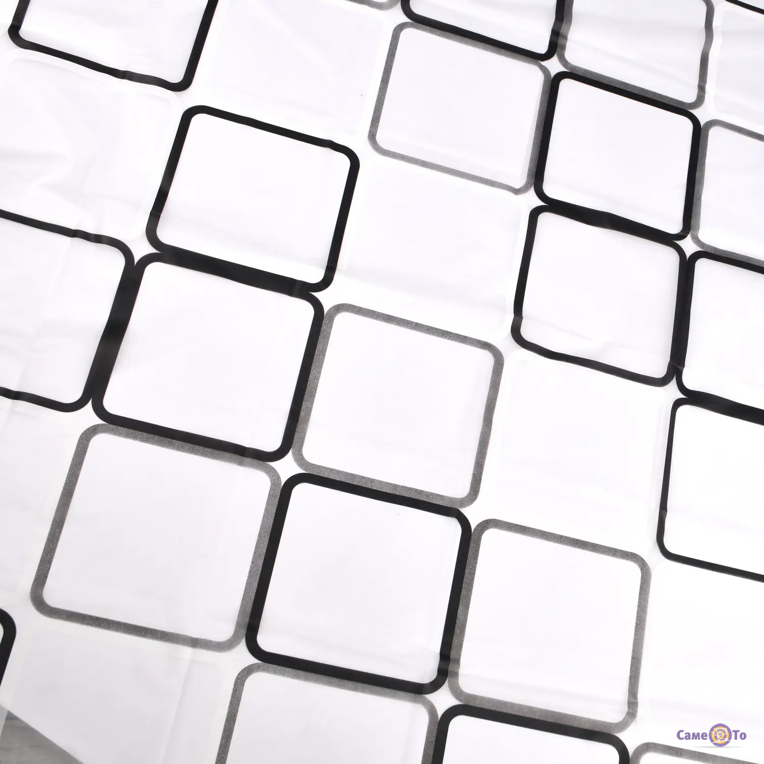 Перетворіть свою ванну кімнату в затишний простір з нашою стильною шторкою для ванної "Білу з квадратами" розміром 240х195 см. Ця душова фіранка не тільки забезпечує комфорт і захист від бризок води, але і надає вашому інтер'єру неповторний шарм.