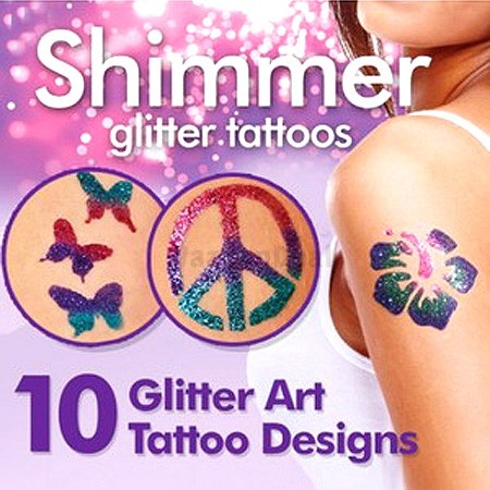 На відміну від справжніх тату, Shimmer Glitter Tattoos тримається протягом семи днів, до того ж його можна видалити самостійно без особливих зусиль і створити інший образ.