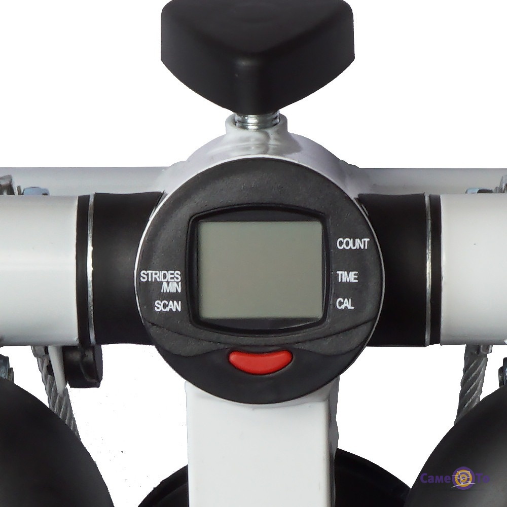 По-третє, даний степер відрізняється широким набором функцій, має цілий ряд корисних характеристик. Наприклад, тут є LED-дисплей з лічильником. На моніторі можна побачити кожну функцію послідовно: щосекундний таймер, кількість витрачених калорій, кількість кроків, зроблених під час тренування і середня кількість кроків за тренування. Включення тренажера відбувається за допомогою червоної кнопки або ж автоматично. До речі, скидання всіх даних відбувається також після натисканна на червону кнопку. Якщо ви не хочете нахилятися, щоб включити степпер торнео, просто почніть заняття, і це миттєво призведе виріб в дію.