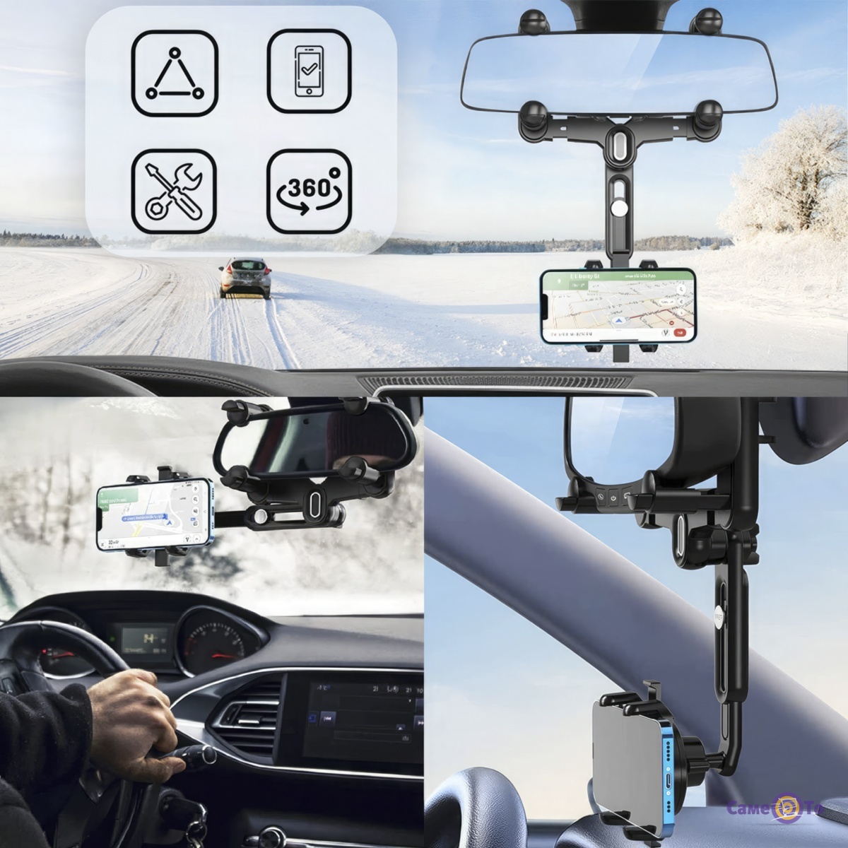 Забезпечте безпеку та зручність під час водіння з тримачем для телефона на дзеркало заднього виду Clip Phone Holder. Дозвольте вашому смартфону стати незамінним помічником за кермом, забезпечуючи легкий доступ до необхідних функцій у будь-який час.