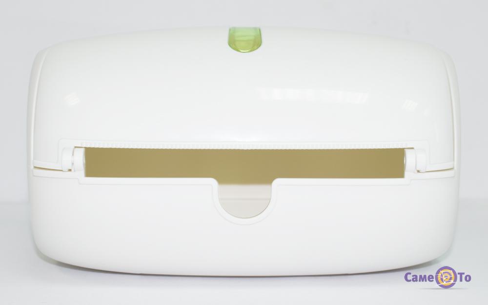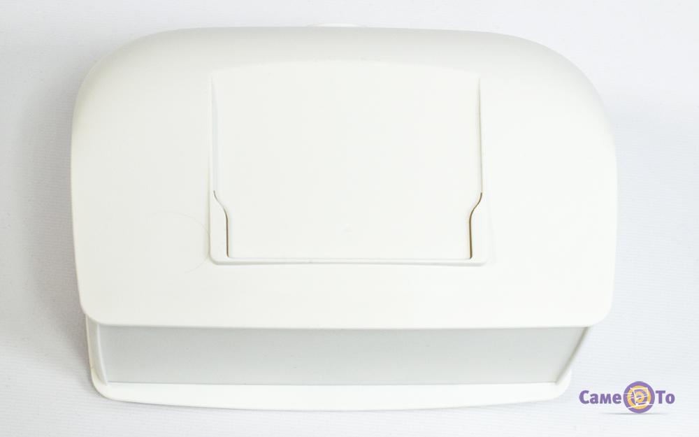 Как и положено, для туалетной бумаги есть специальный отсек, который закрывается и открывается с помощью крышки. Все детали изделия изготовлены из качественного и прочного материала, перед нами держатель для туалетной бумаги пластиковый.