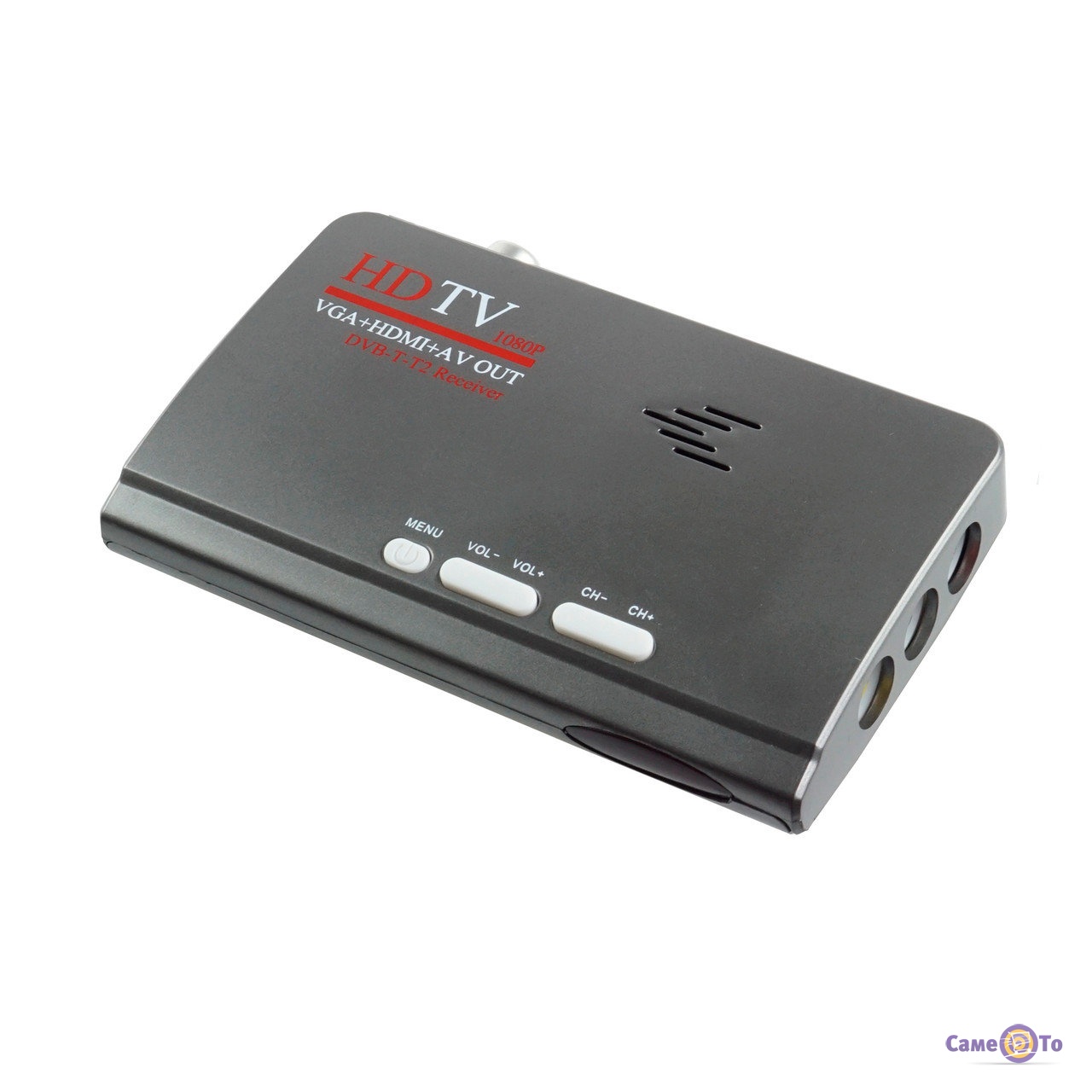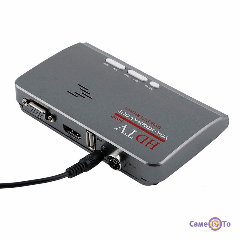 Справа ТВ тюнер для телевизора имеет отверстие RCA, сзади —VGA, HDMI, USB, гнездо для питания и вход для антенны. С нижней части имеются отверстия для вертикального монтажа цифровой приставки. Также возможно установить тюнер горизонтально на стол, тумбу, полку или другую подходящую мебель.