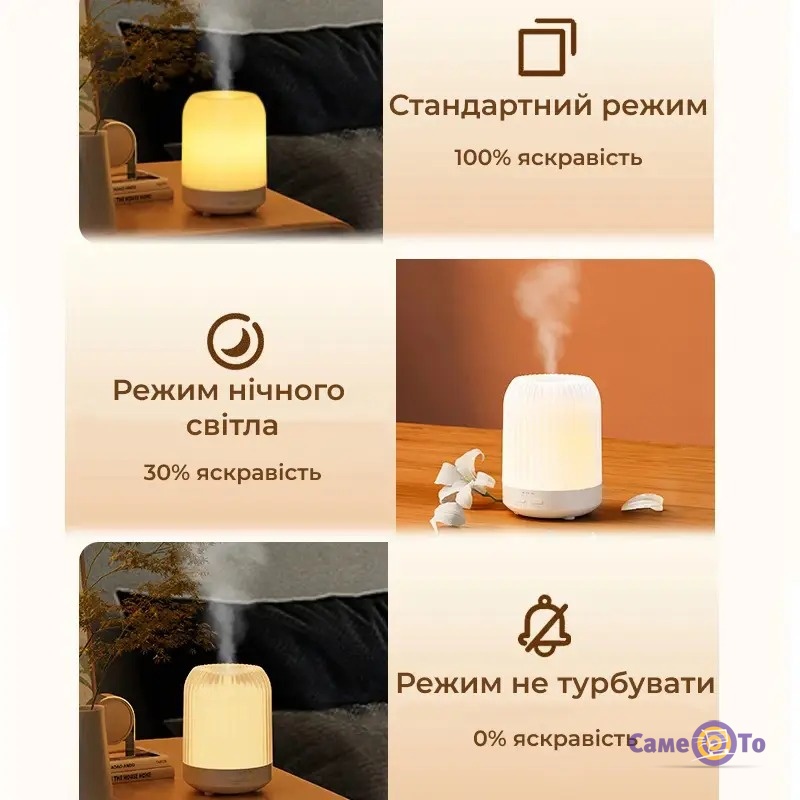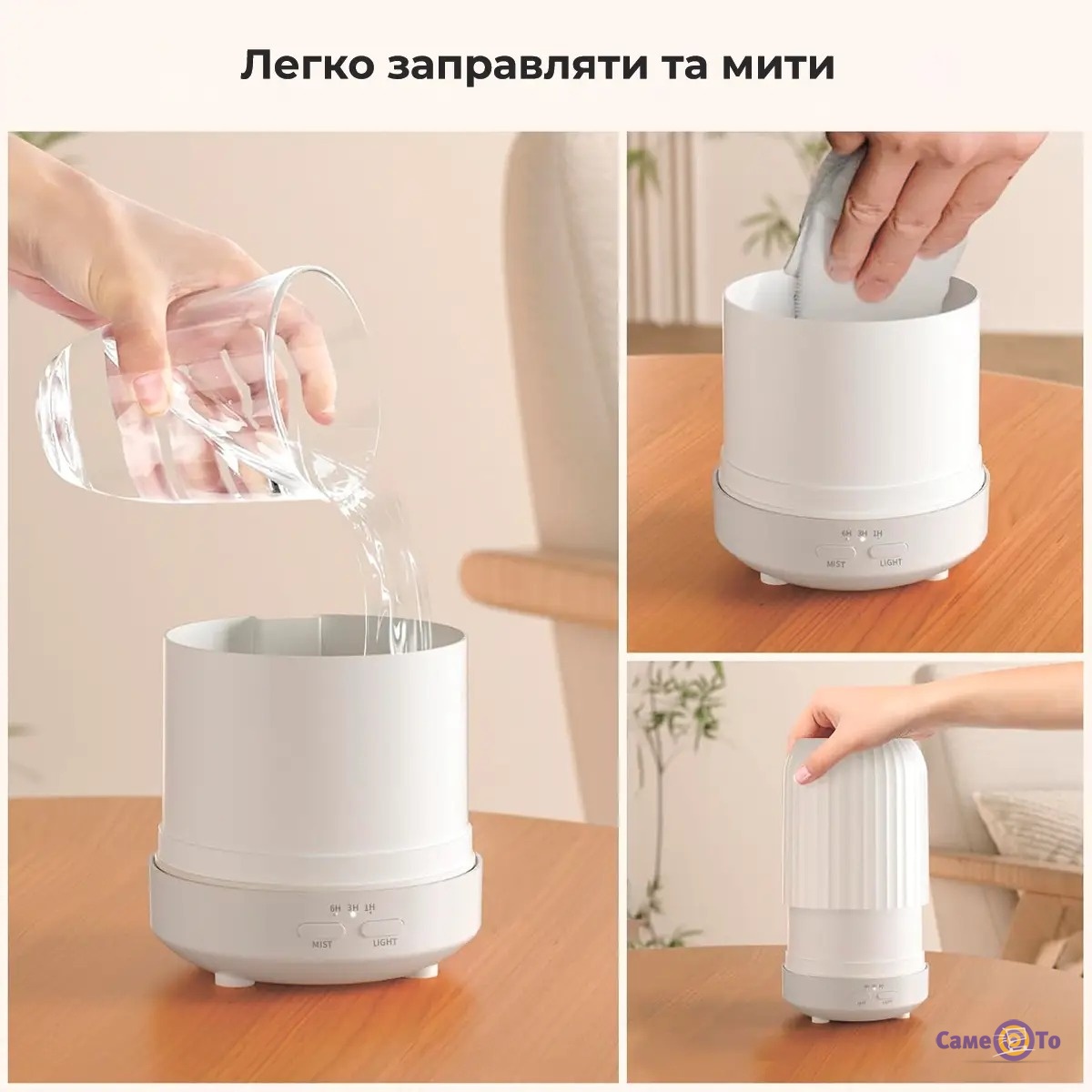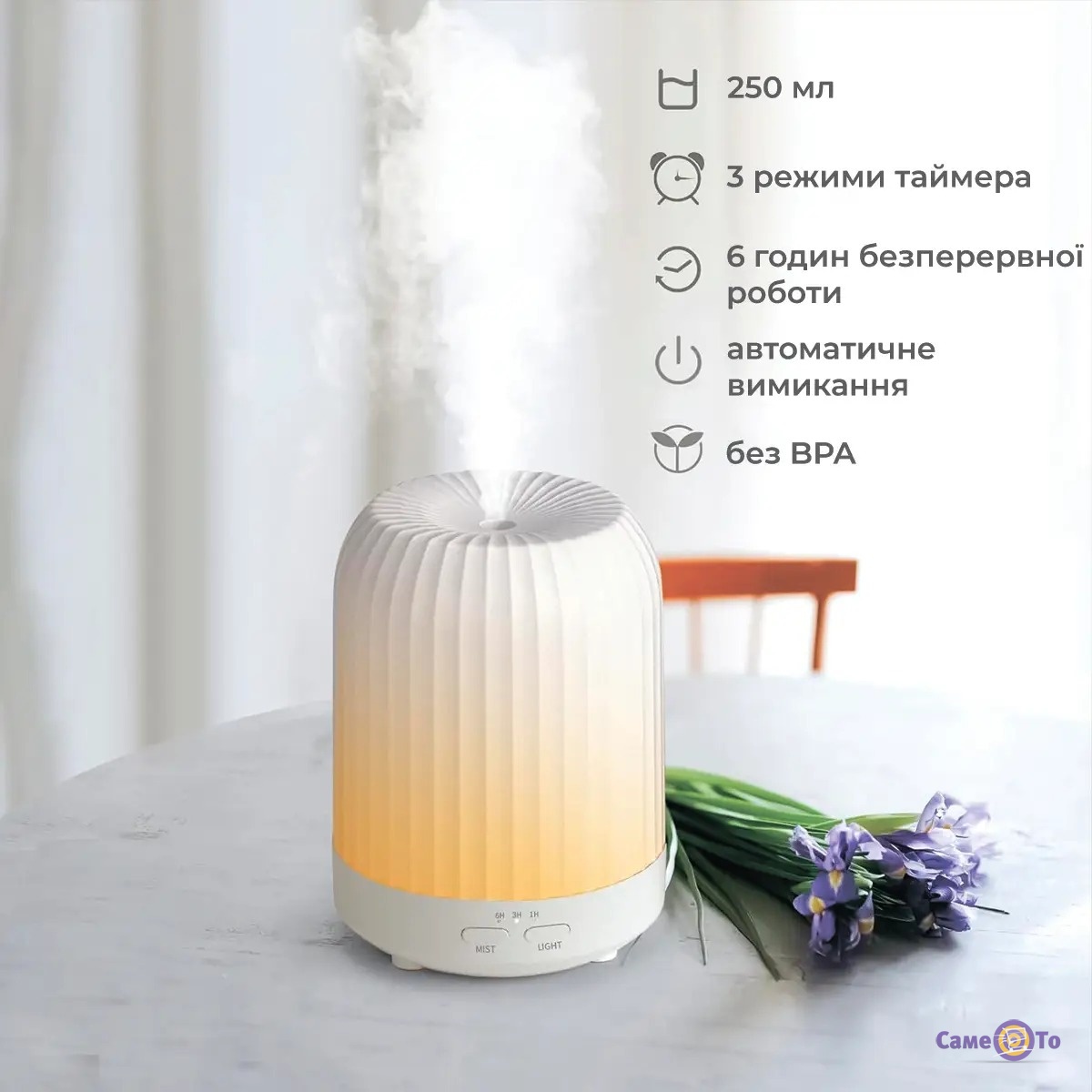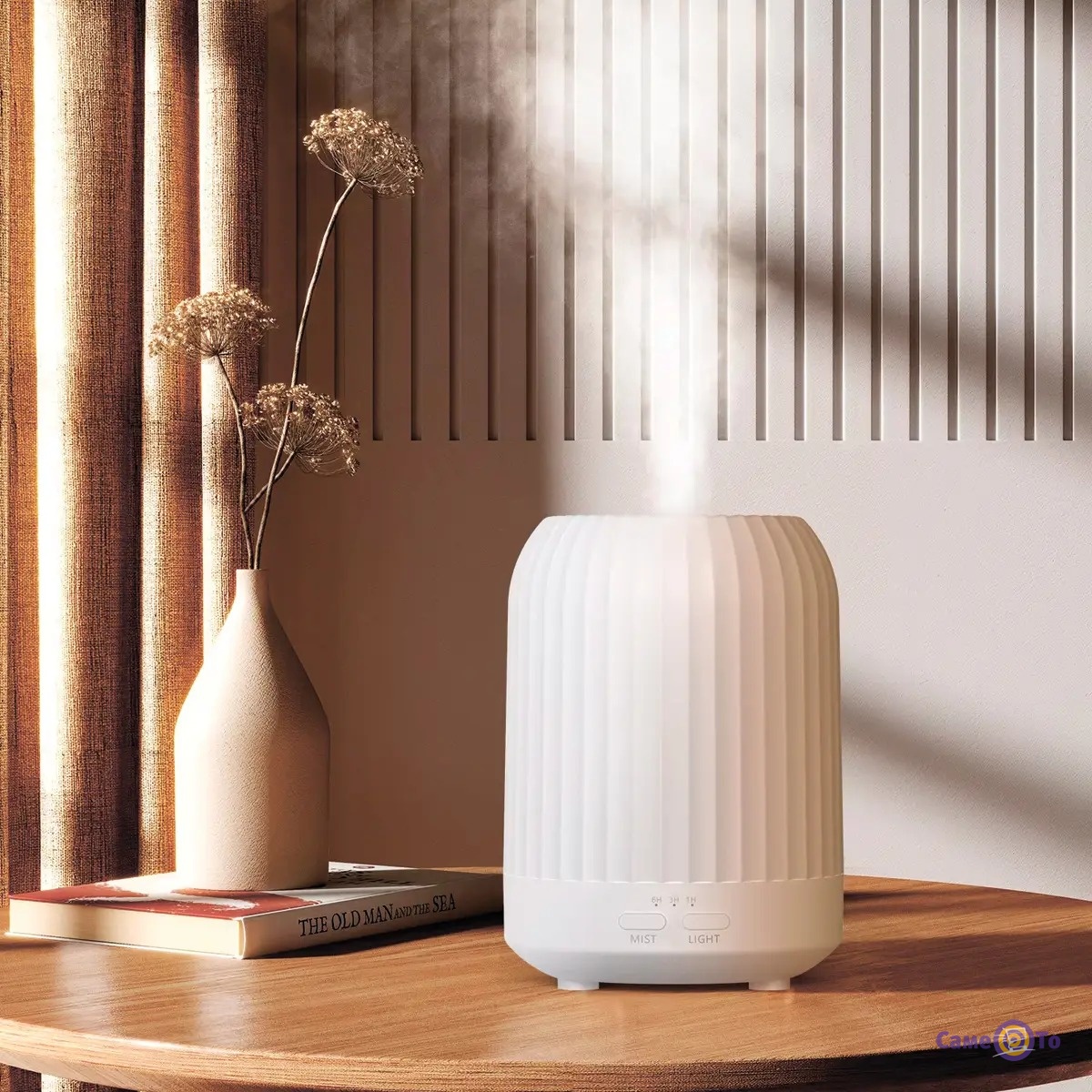 Цей дифузор для будинку створює комфортну атмосферу, зволожуючи повітря та наповнюючи його приємними ароматами. Підходить для дитячої кімнати, спальні та офісу. Компактний та портативний, він легко вписується у будь-який інтер'єр. Електричний аромадифузор також служить нічником, створюючи м'яке освітлення.