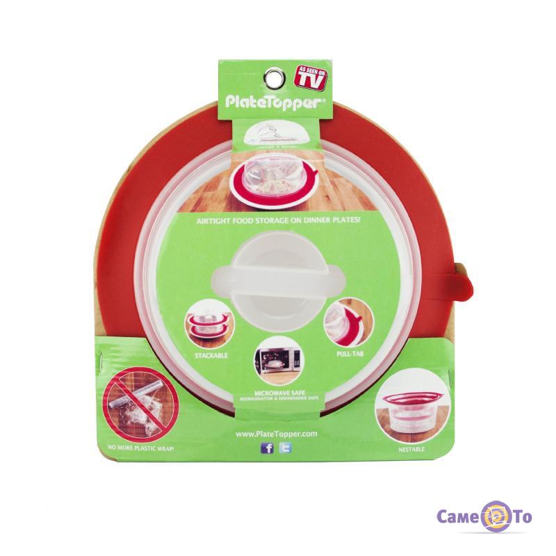 Универсальная крышка Плейт Топпер имеет специальное силиконовое покрытие, которое располагается по всему краю крышки. Данное покрытие действует как присоска - Вы прикладываете крышку к тарелке, немного прижимаете, и крышка прилипает к тарелке как присоска. Таким образом под крышкой создаётся свой микроклимат: под неё не проникают посторонние запахи, бактерии, микробы.