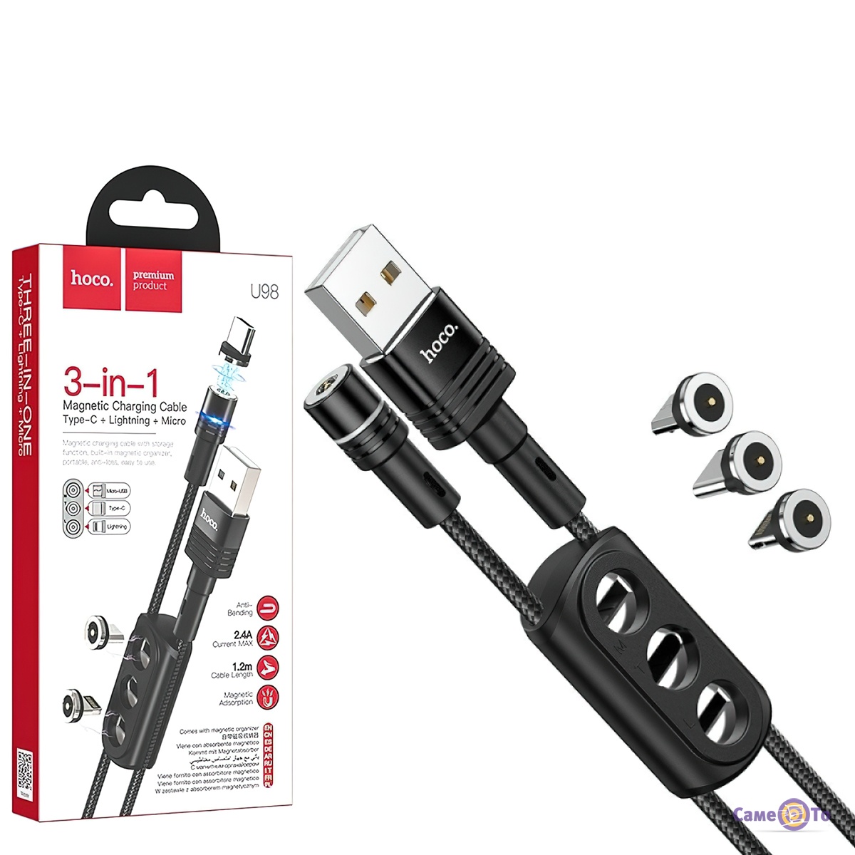 Магнітний кабель для зарядки 3в1 "Hoco U98", характеристики: