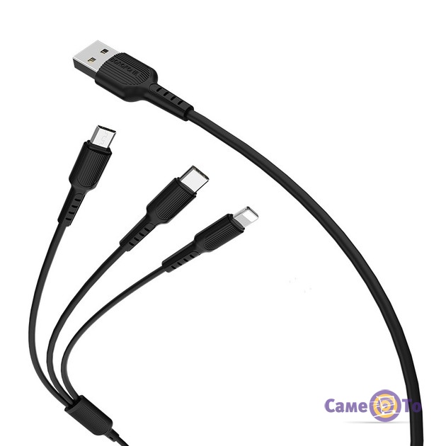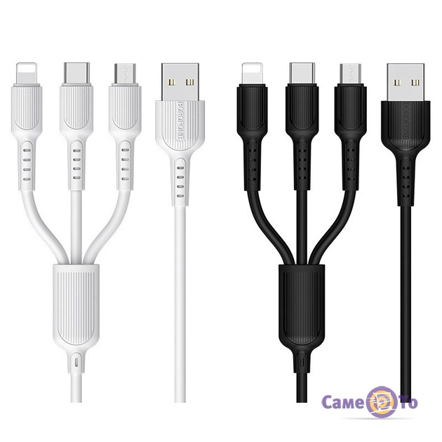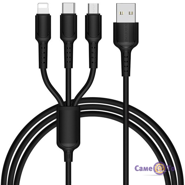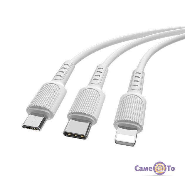 Универсальный кабель для зарядки телефонов 3в1 Borofone BX16 Micro-USB-TypeC-Lightning – идеальное решение для зарядки и синхронизации всех ваших устройств.