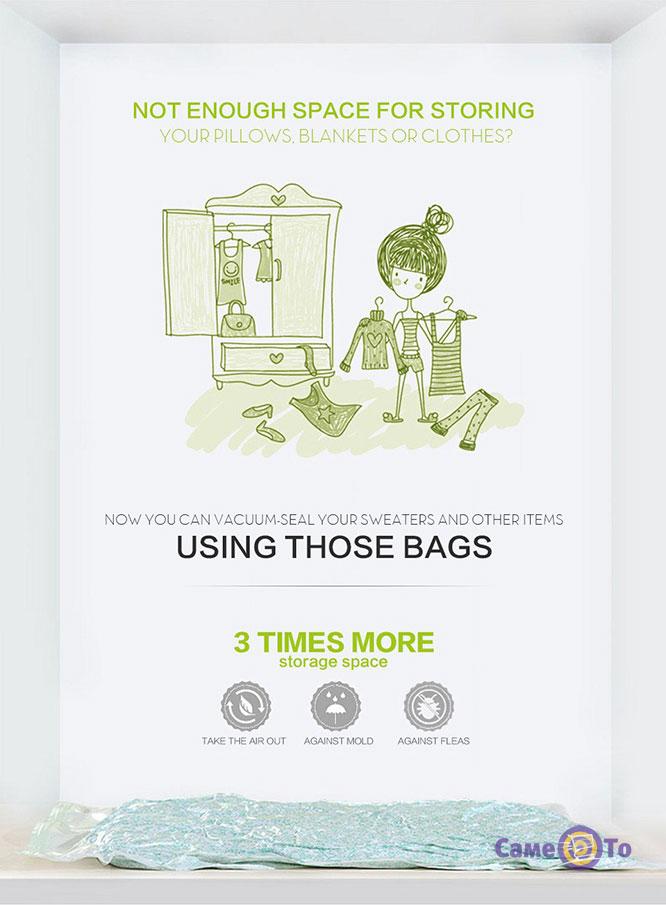 Если Вам не хватает пространства в шкафу или гардеробе, то на помощь придут такие приспособления как компрессионные пакеты для одежды.