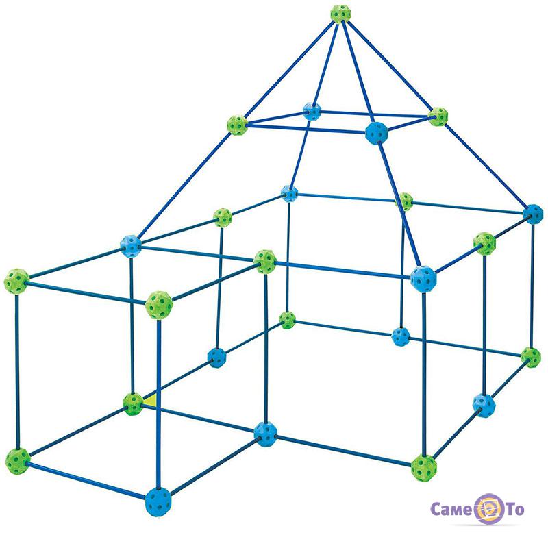 Це насправді унікальний і неповторний набір, адже з його допомогою кожна дитина зможе відчути себе справжнім будівельником, змайструвавши собі не просто іграшку, а цілий замок або будинок. Під час гри з подібним конструктором діти не просто отримують задоволення від процесу, практичний підсумковий результат, а й розвивають своє мислення, орієнтацію в просторі, посидючість, фантазію. Якщо зверху зібрану конструкцію накрити ковдрою або покривалом, вийде відмінне приміщення для іграшок, курінь, гараж для машин або кімнатка для відпочинку, що нагадує звичний тканинний намет. Збірка конструктора - це зовсім нескладний процес. Стрижні легко з'єднуються між собою за допомогою спеціальних шарнірів.