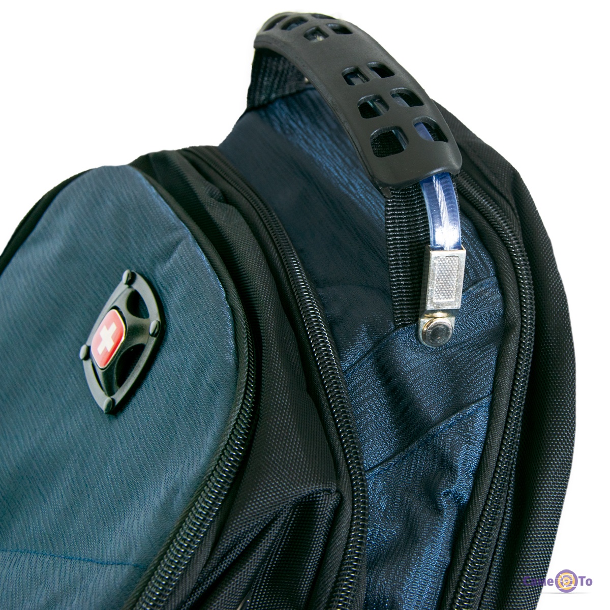 • Поєднаний аудіопорт + USB порт на лямці;