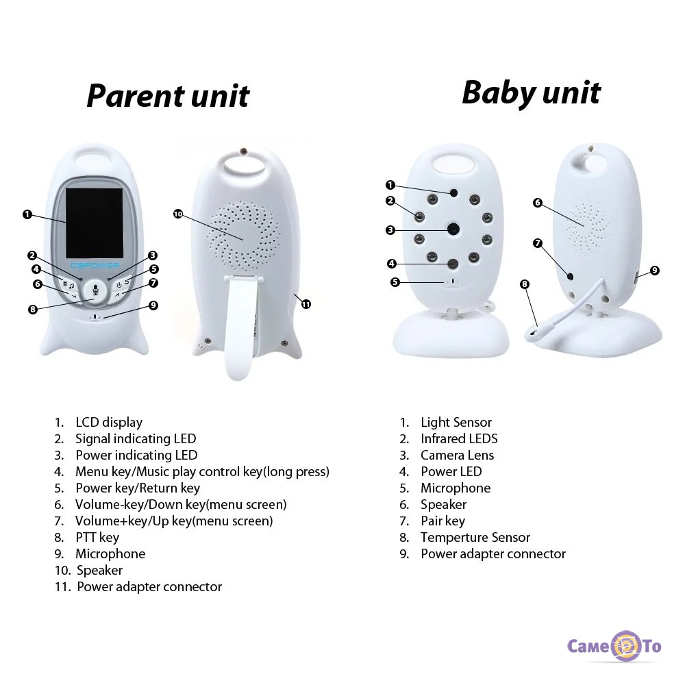 Перевагою відеоняні є легкість і доступність в налаштуванні її функцій, освоїти які під силу кожному. Модель укомплектована спеціальним дитячим блоком, камерою відеоспостереження, блоком батьківського контролю з кольоровим екраном, двома адаптерами живлення, для дитячого та дорослого блоків, а також керівництвом користувача англійською мовою.