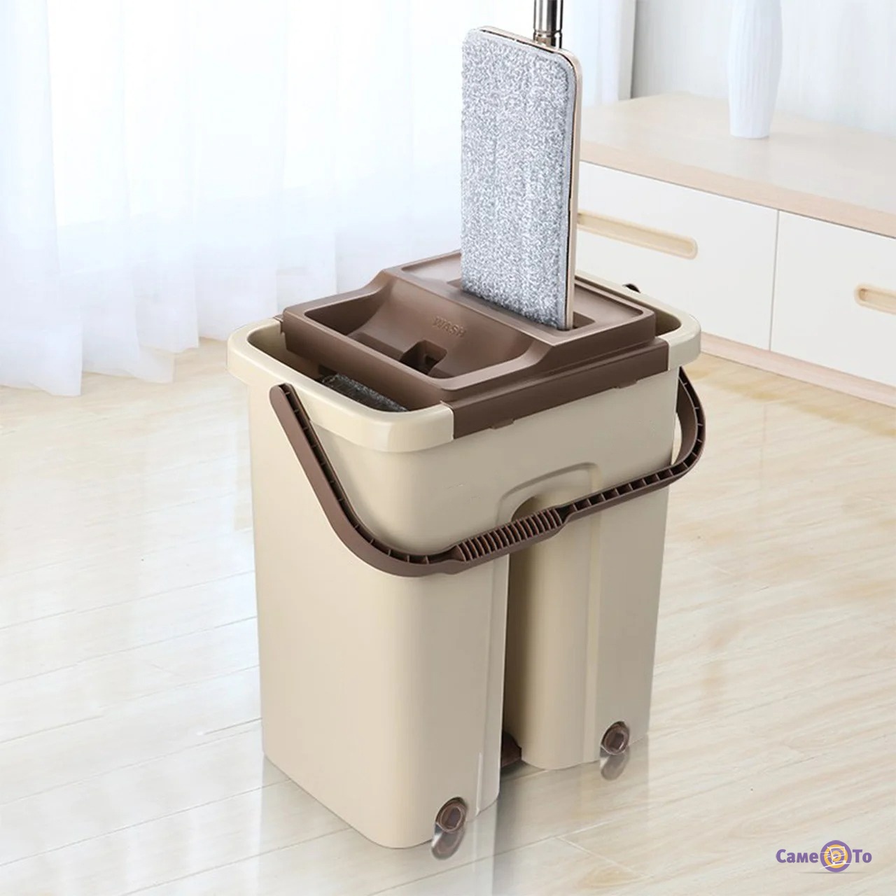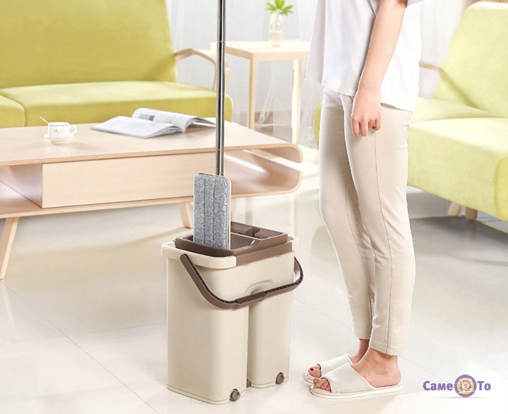 Функціональна швабра з відром для очищення брудних підлог у вашому домі. Набір Scratch Anet швабри і відра містить відро з двома камерами, одна сторона призначена для самоочищення, а інша - для віджиму до високого ступеня сухості.