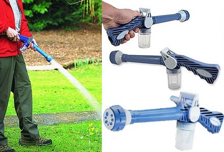 Цей прилад незамінний не тільки для поливу всілякої рослинності, а й для капітального прибирання території, зокрема, асфальтованих доріжок, а так же, для миття автомобіля. Водомет ez jet працює у восьми режимах, підбирати які Ви зможете самостійно. Наприклад, для поливу рослин, таких як дерев, кущів, газону і грядок - Ви можете скористатися режимами «легкий полив», «дрібні бризки», «круговий струмінь» і т.д. Регулювати натиск і вибирати режим Ви зможете за допомогою зручного перемикача на water cannon. Для миття машини Ви так само зможете використовувати декілька режимів, при бажанні, періодично додаючи в спеціальну, вбудовану в водомет ez jet ємкість, засіб для миття авто, щоб результат був ще ефективнішим. Одним з головних достоїнств водомета water cannon є можливість сильного напору, за допомогою якого Ви моментально очистите асфальтовану поверхню у дворі, а також, зможете очистити від бруду навіть зовнішні вікна на другому поверсі, стоячи на будь-якій відстані від них. Ви будете в захваті від того, як на Ваших очах будь-яка поверхня стане ідеально чистою! Водомет ez jet - найкраще рішення для приведення в порядок дачної території!